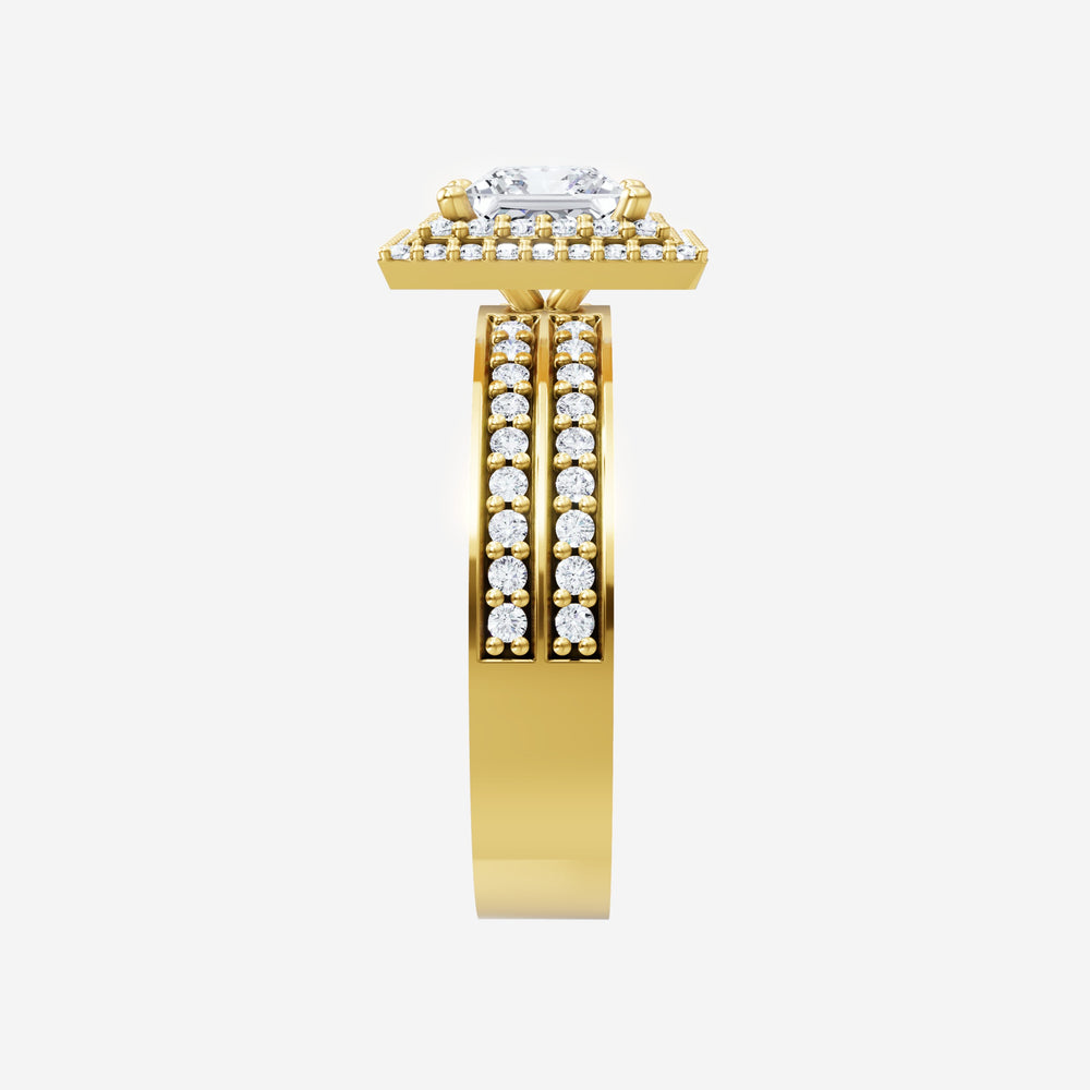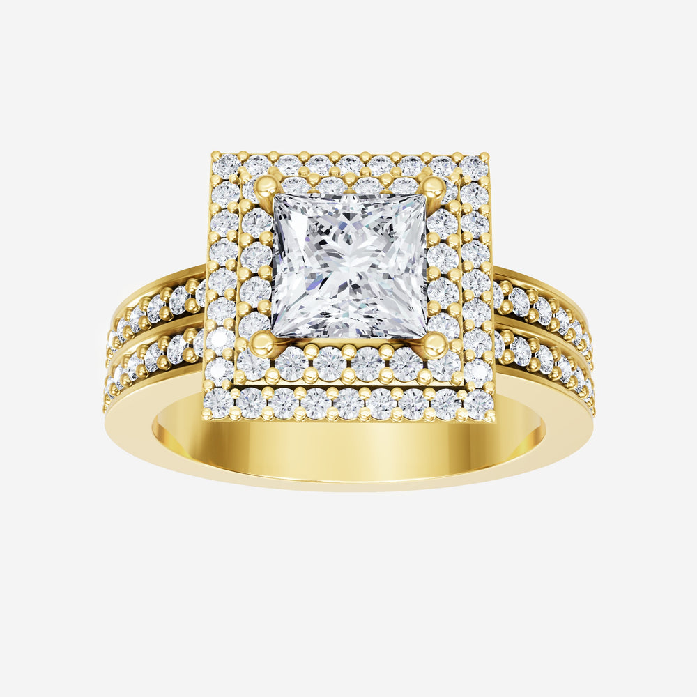 You’ve designed a ring that reflects lasting elegance and grace! Crafted from 18k Yellow Gold, this exquisite Princess lab-grown diamond is the centerpiece of this unique design. This Double Row Pave with a Double Halo head showcases the brilliance of the Princess diamond, creating a timeless look. Whether as a gift or a personal treasure, this ring will forever symbolize the most meaningful moments in life.