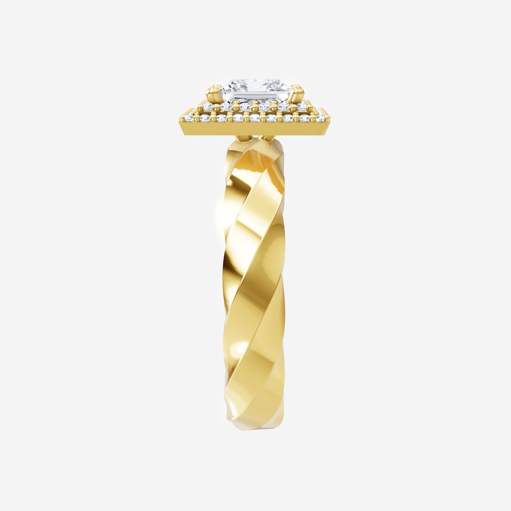 You’ve designed a ring that reflects lasting elegance and grace! Crafted from 18k Yellow Gold, this exquisite Princess lab-grown diamond is the centerpiece of this unique design. This Twisted Shank with a Double Halo head showcases the brilliance of the Princess diamond, creating a timeless look. It's a piece of elegance and beauty, perfect for marking life's most beautiful occasions.