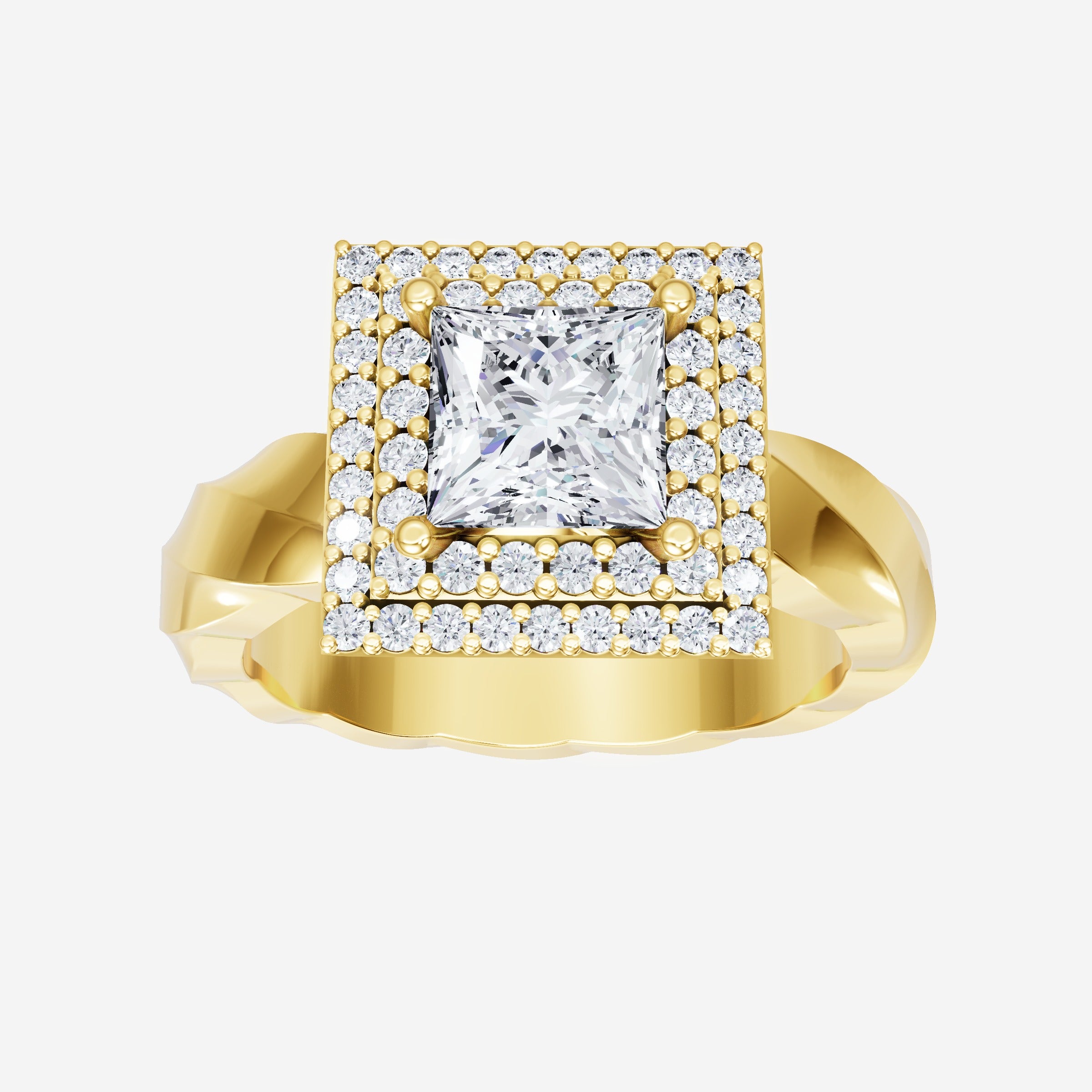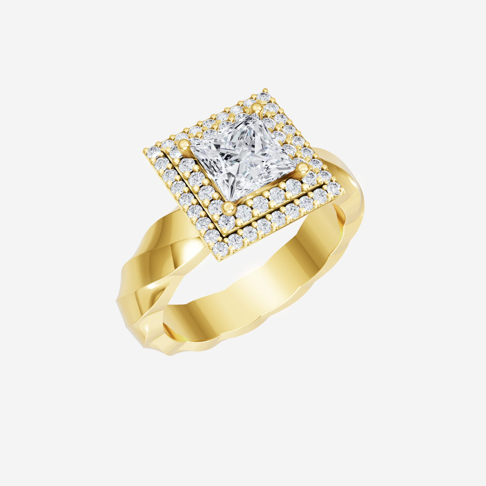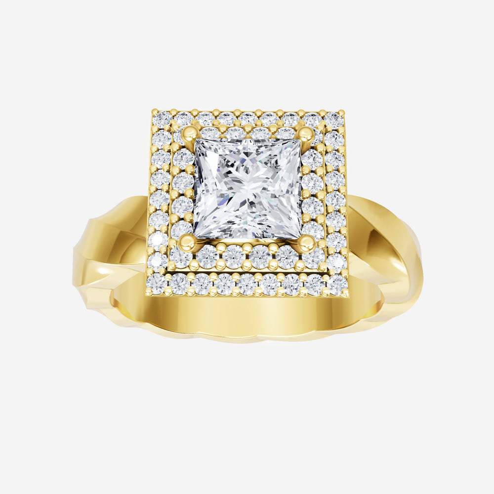 You’ve designed a ring that reflects lasting elegance and grace! Crafted from 18k Yellow Gold, this exquisite Princess lab-grown diamond is the centerpiece of this unique design. This Twisted Shank with a Double Halo head showcases the brilliance of the Princess diamond, creating a timeless look. With this ring, celebrate every moment of joy, success, and love.