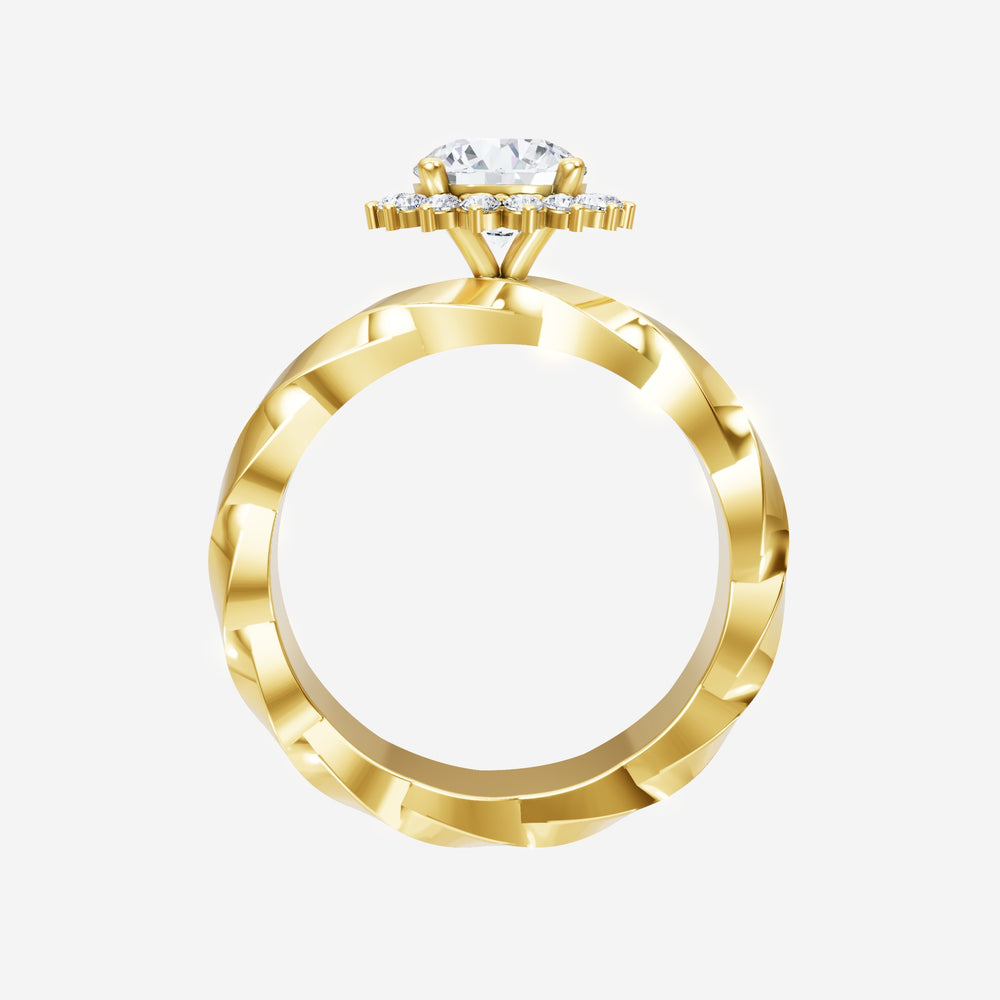 You’ve designed a ring that reflects lasting elegance and grace! Crafted from 18k Yellow Gold, this exquisite Round lab-grown diamond is the centerpiece of this unique design. This Twisted Shank with a Diana Halo head showcases the brilliance of the Round diamond, creating a timeless look. Whether as a gift or a personal treasure, this ring will forever symbolize the most meaningful moments in life.