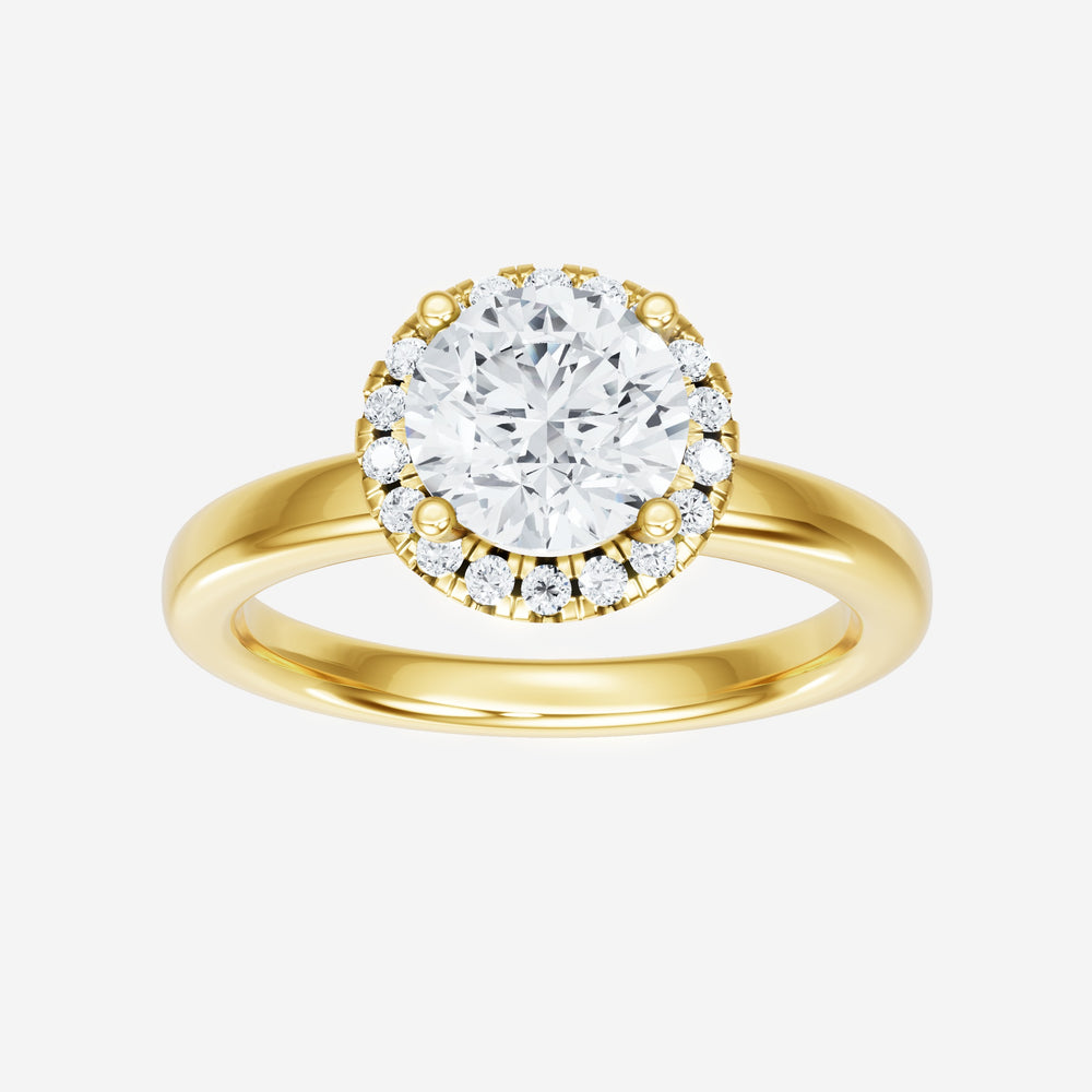 You’ve designed a ring that reflects lasting elegance and grace! Crafted from 18k Yellow Gold, this exquisite Round lab-grown diamond is the centerpiece of this unique design. This Basic Plain Shank with a Micro Halo head showcases the brilliance of the Round diamond, creating a timeless look. A perfect choice to celebrate love, commitment, and everything in between.