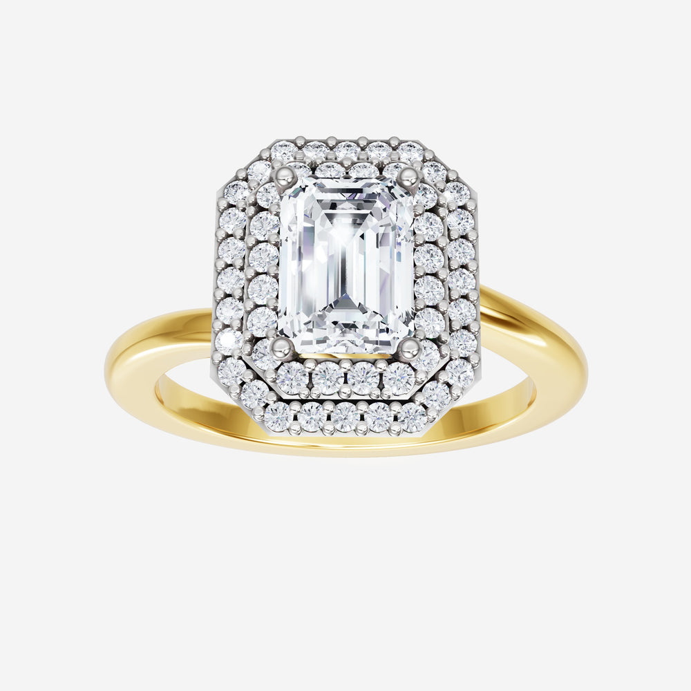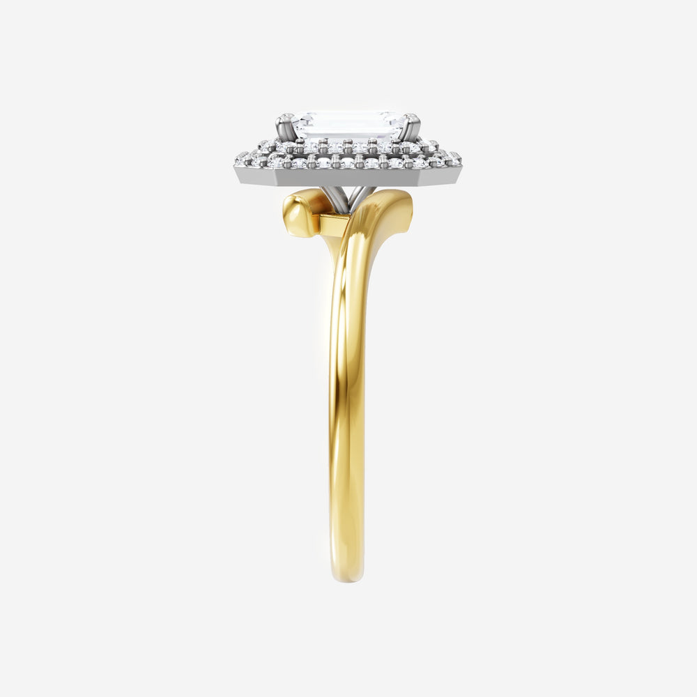 You’ve designed a ring that reflects lasting elegance and grace! Crafted from 18k Yellow White Dual Tone, this exquisite Emerald lab-grown diamond is the centerpiece of this unique design. This Bypass Shank with a Double Halo head showcases the brilliance of the Emerald diamond, creating a timeless look. This ring will become a cherished reminder of life's most treasured moments.