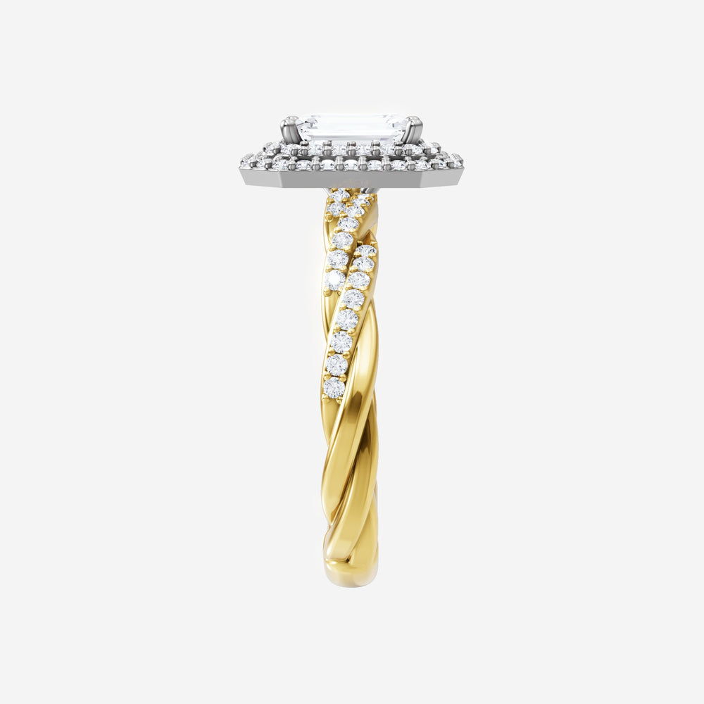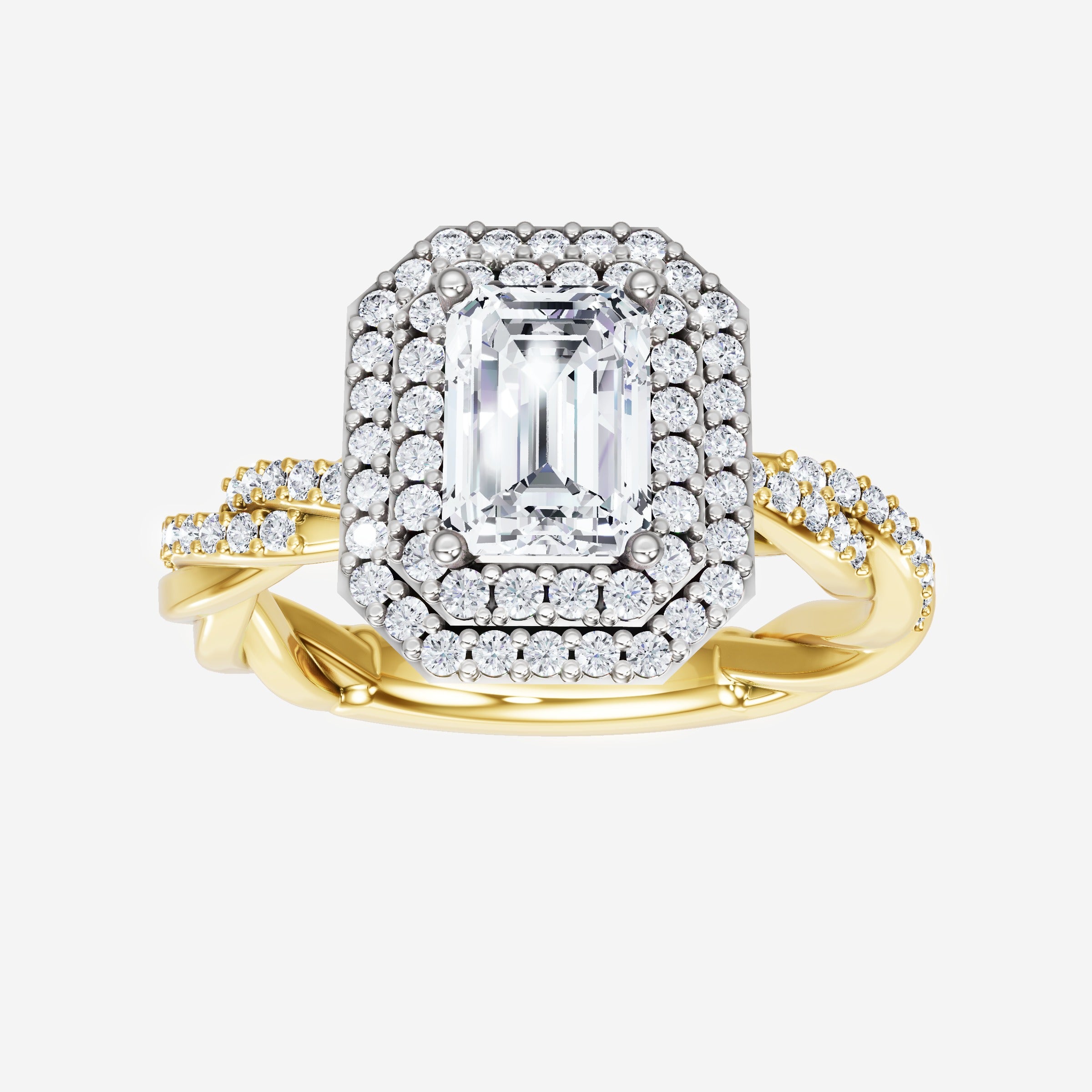 You’ve designed a ring that reflects lasting elegance and grace! Crafted from 18k Yellow White Dual Tone, this exquisite Emerald lab-grown diamond is the centerpiece of this unique design. This Rope Diamond Shank with a Double Halo head showcases the brilliance of the Emerald diamond, creating a timeless look. Ideal for those who seek both beauty and meaning, this ring will stand as a testament to cherished memories.