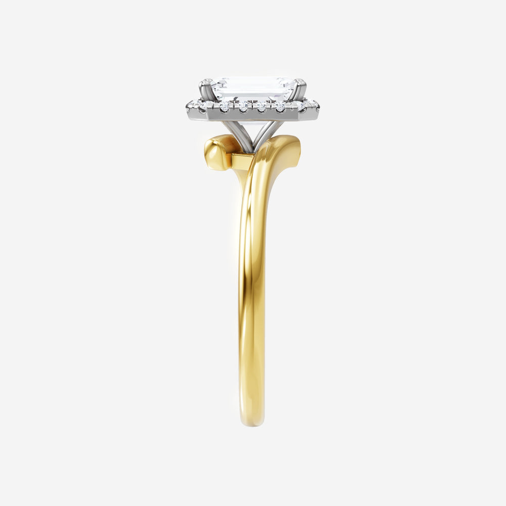 You’ve designed a ring that reflects lasting elegance and grace! Crafted from 18k Yellow White Dual Tone, this exquisite Emerald lab-grown diamond is the centerpiece of this unique design. This Bypass Shank with a Micro Halo head showcases the brilliance of the Emerald diamond, creating a timeless look. It's a piece of elegance and beauty, perfect for marking life's most beautiful occasions.