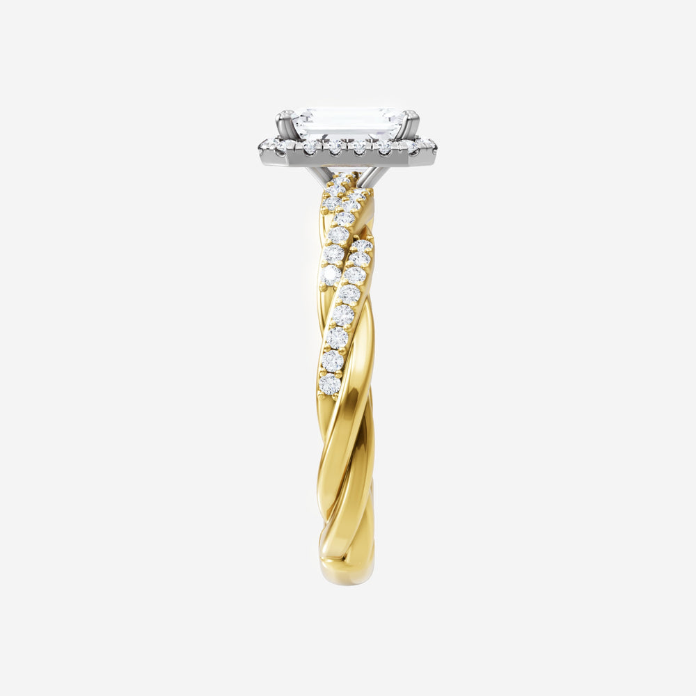 You’ve designed a ring that reflects lasting elegance and grace! Crafted from 18k Yellow White Dual Tone, this exquisite Emerald lab-grown diamond is the centerpiece of this unique design. This Rope Diamond Shank with a Micro Halo head showcases the brilliance of the Emerald diamond, creating a timeless look. Ideal for those who seek both beauty and meaning, this ring will stand as a testament to cherished memories.