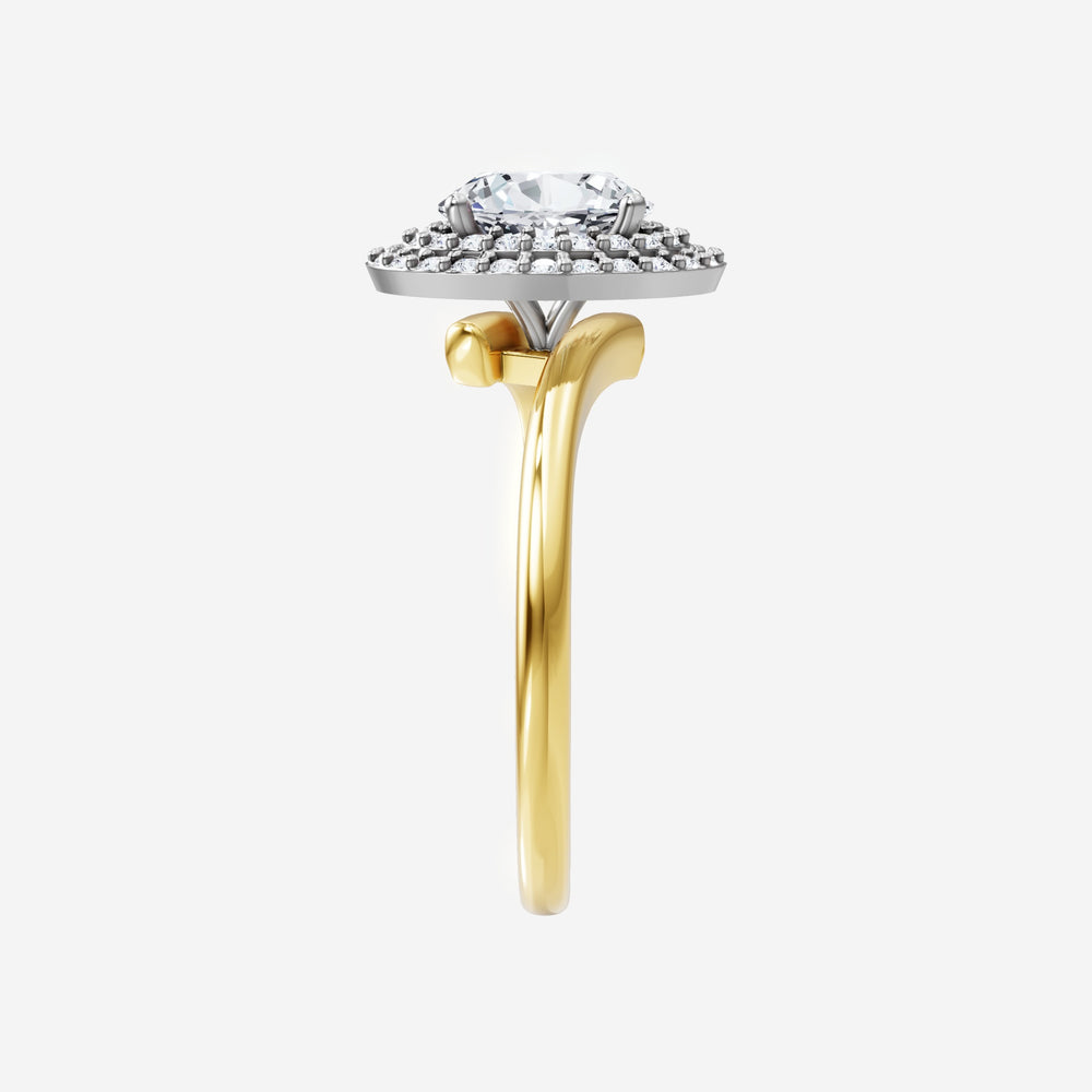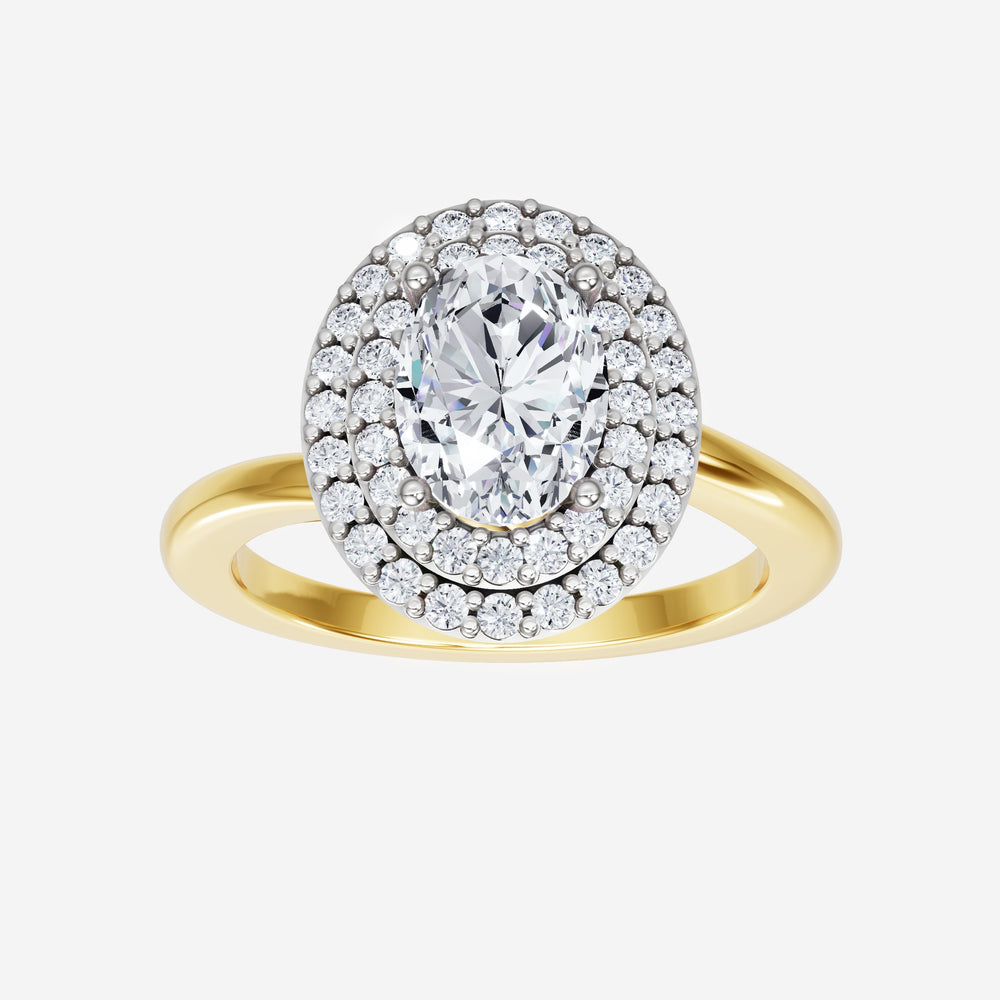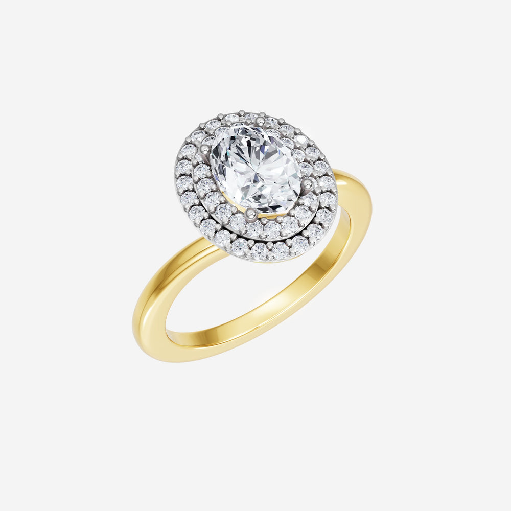 You’ve designed a ring that reflects lasting elegance and grace! Crafted from 18k Yellow White Dual Tone, this exquisite Oval lab-grown diamond is the centerpiece of this unique design. This Bypass Shank with a Double Halo head showcases the brilliance of the Oval diamond, creating a timeless look. This elegant piece is the perfect symbol of love, strength, and timeless beauty.