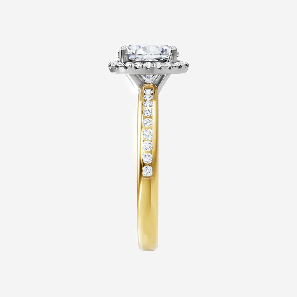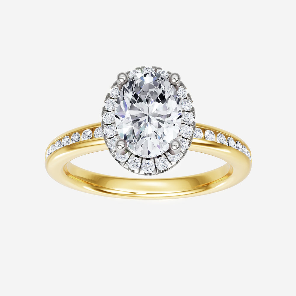 You’ve designed a ring that reflects lasting elegance and grace! Crafted from 18k Yellow White Dual Tone, this exquisite Oval lab-grown diamond is the centerpiece of this unique design. This Channel Set Shank with a Micro Halo head showcases the brilliance of the Oval diamond, creating a timeless look. This stunning ring makes the perfect symbol of everlasting love and devotion.
