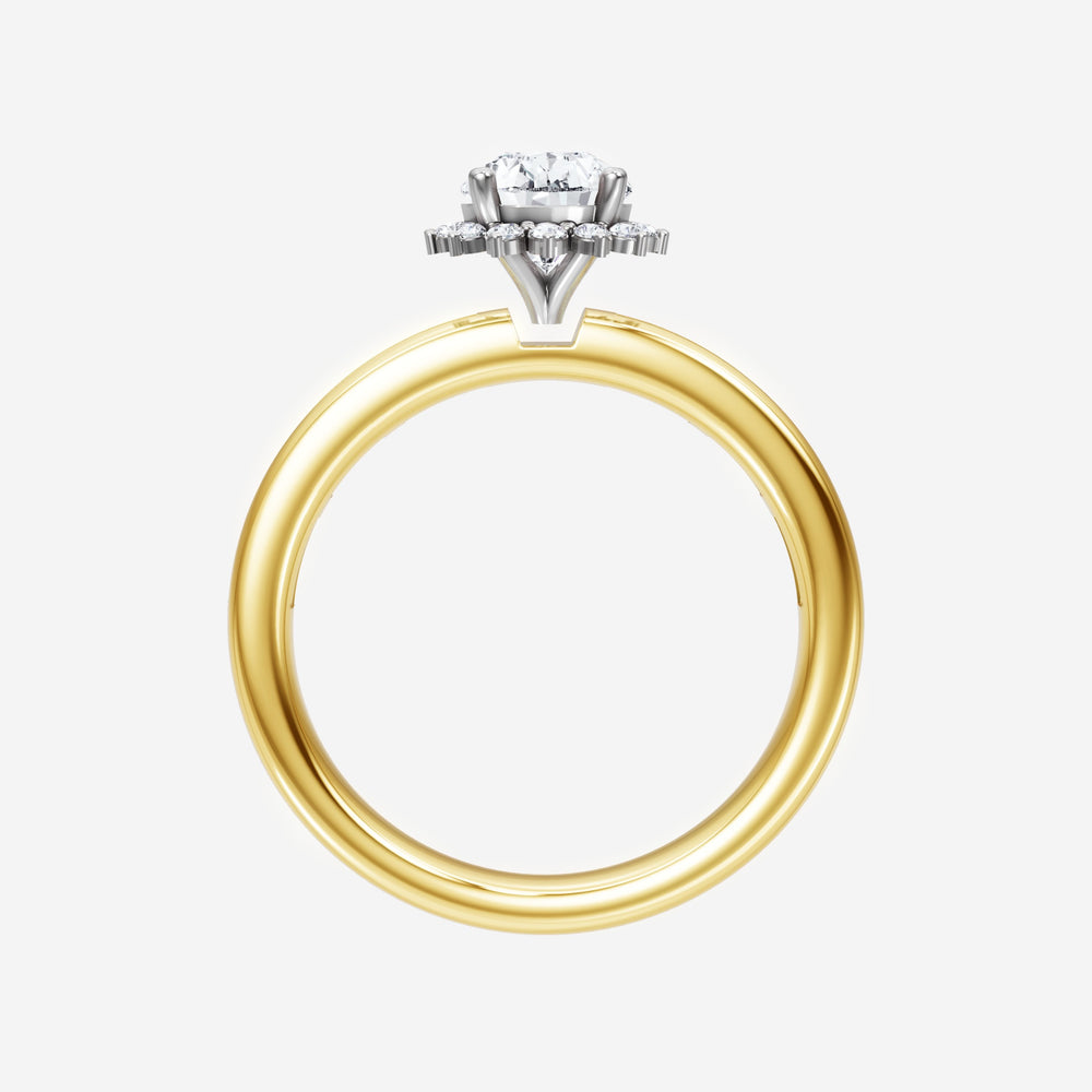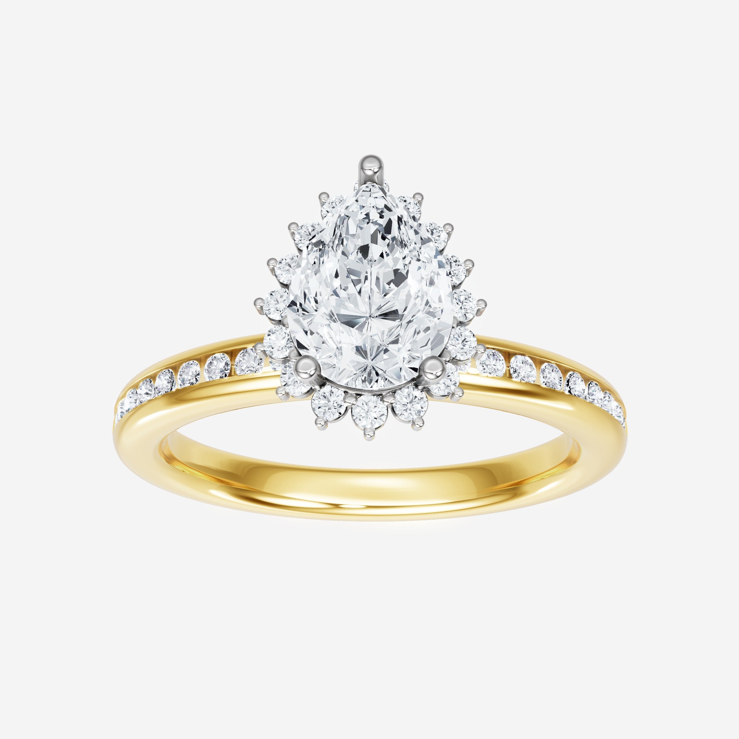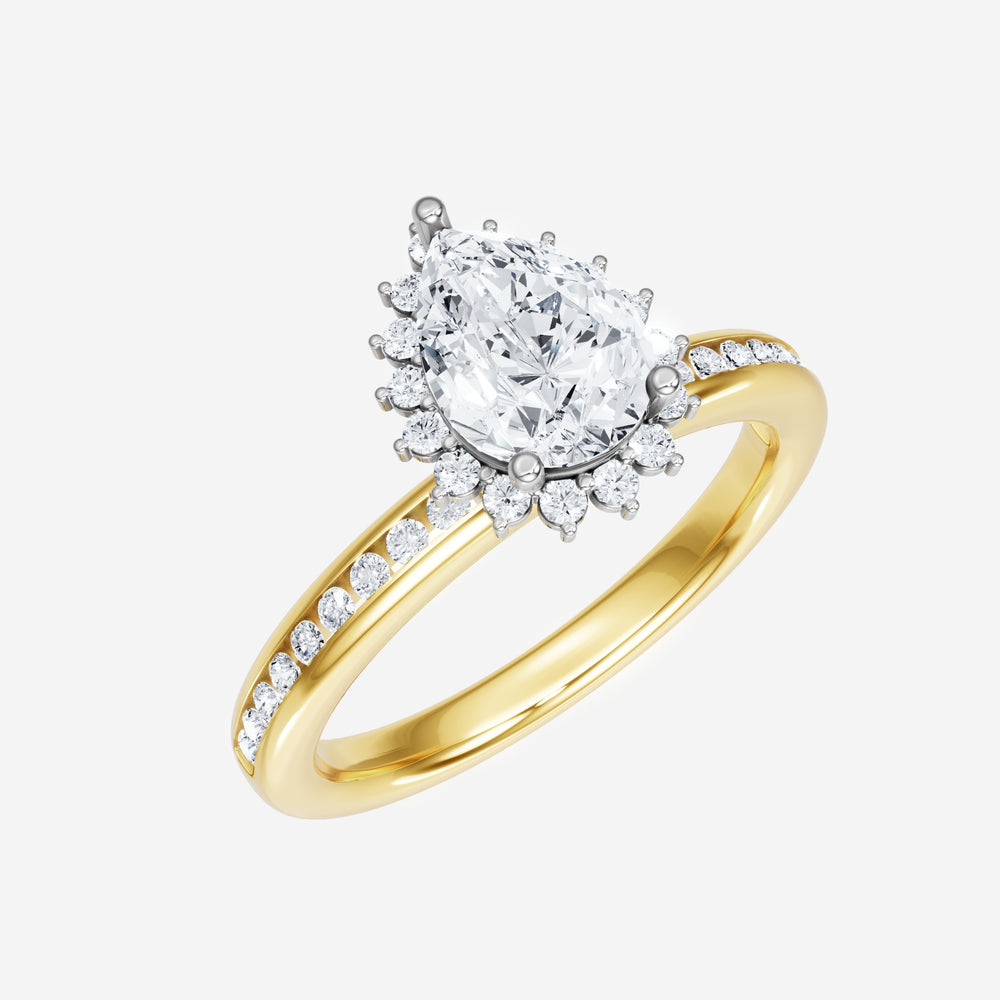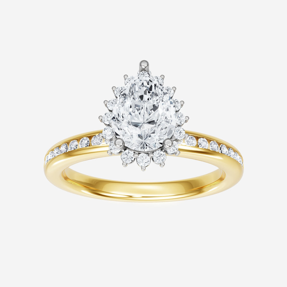 You’ve designed a ring that reflects lasting elegance and grace! Crafted from 18k Yellow White Dual Tone, this exquisite Pear lab-grown diamond is the centerpiece of this unique design. This Channel Set Shank with a Diana Halo head showcases the brilliance of the Pear diamond, creating a timeless look. With this ring, celebrate every moment of joy, success, and love.