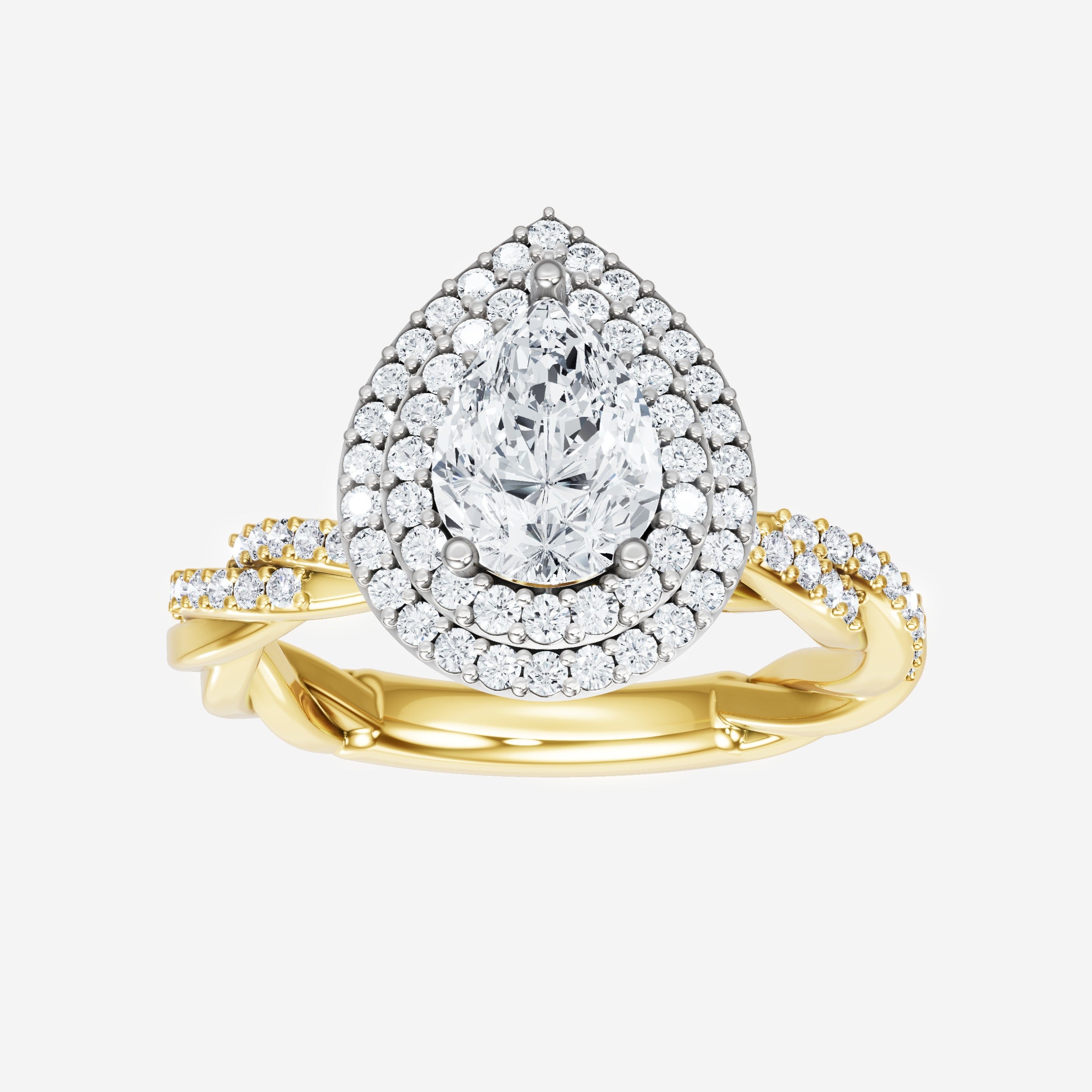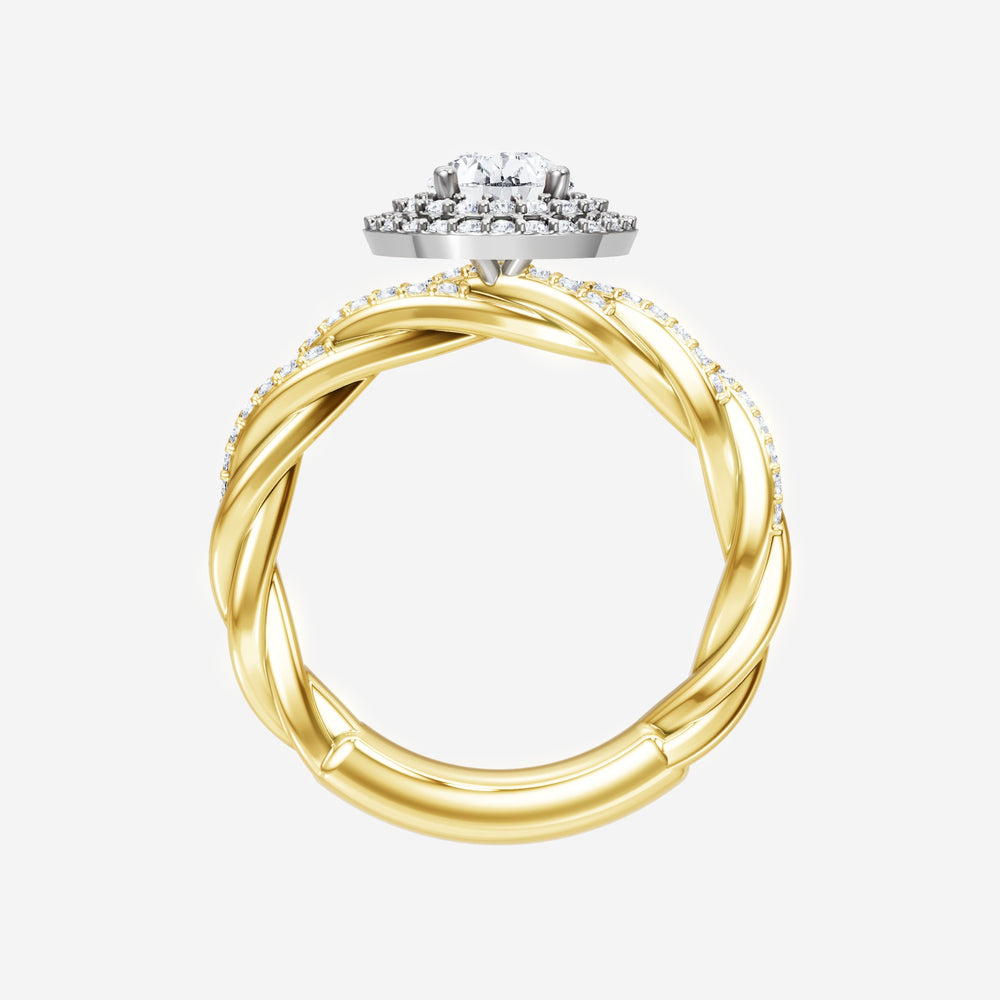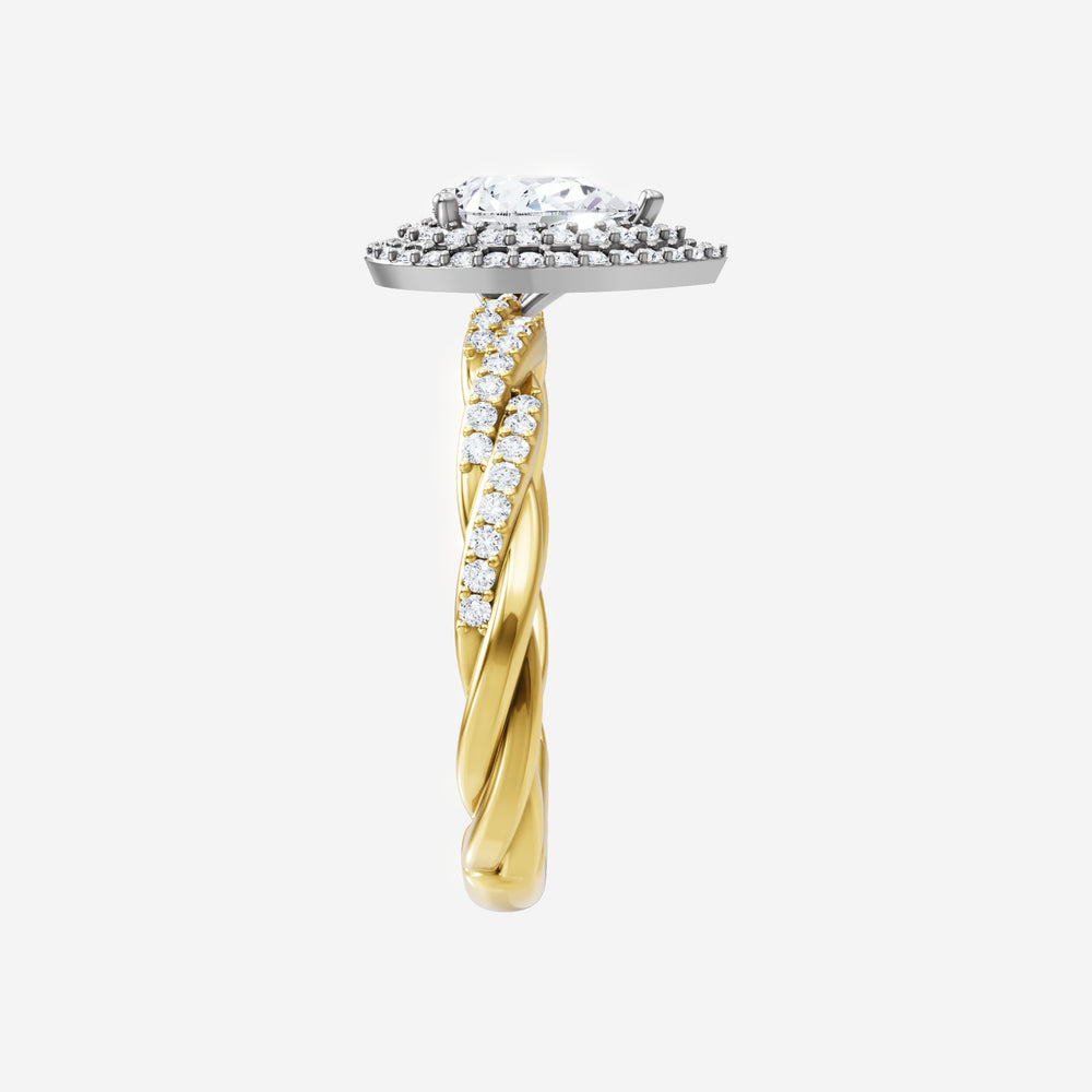 You’ve designed a ring that reflects lasting elegance and grace! Crafted from 18k Yellow White Dual Tone, this exquisite Pear lab-grown diamond is the centerpiece of this unique design. This Rope Diamond Shank with a Double Halo head showcases the brilliance of the Pear diamond, creating a timeless look. It's a piece of elegance and beauty, perfect for marking life's most beautiful occasions.