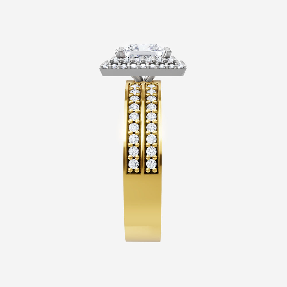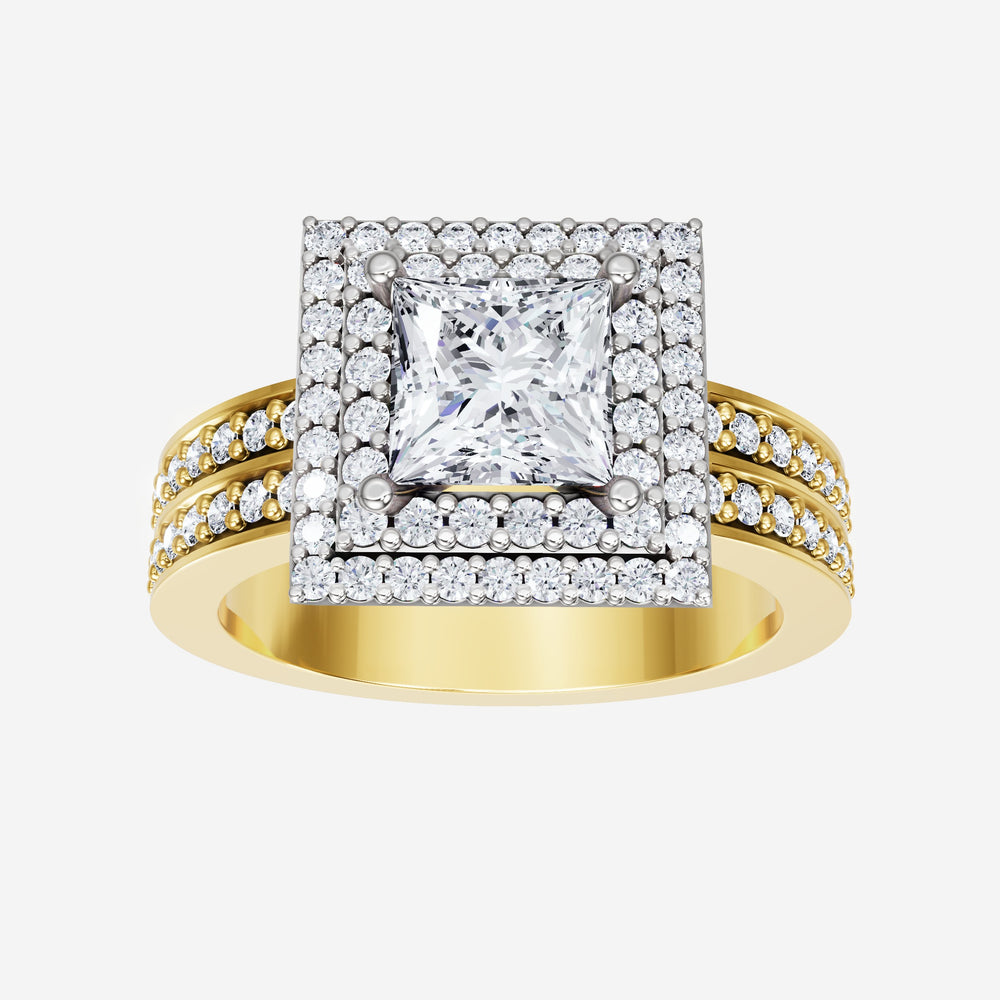 You’ve designed a ring that reflects lasting elegance and grace! Crafted from 18k Yellow White Dual Tone, this exquisite Princess lab-grown diamond is the centerpiece of this unique design. This Double Row Pave with a Double Halo head showcases the brilliance of the Princess diamond, creating a timeless look. This stunning ring makes the perfect symbol of everlasting love and devotion.