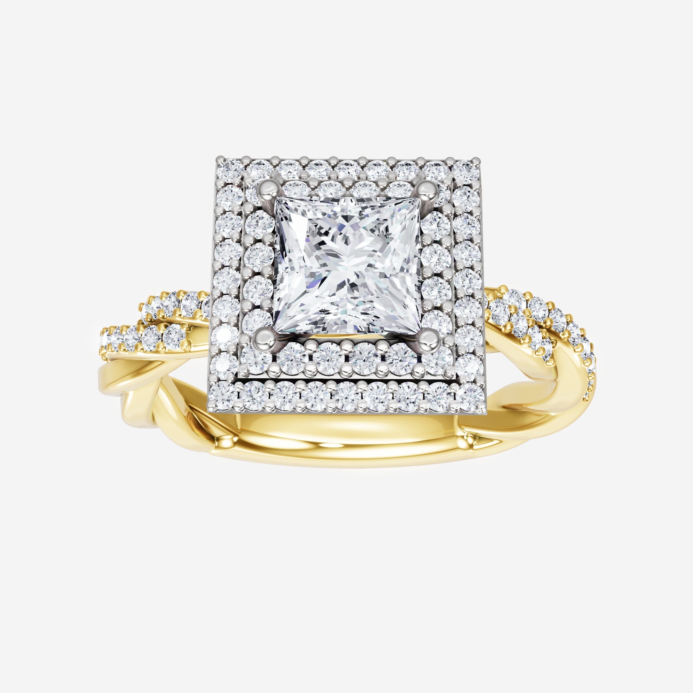 You’ve designed a ring that reflects lasting elegance and grace! Crafted from 18k Yellow White Dual Tone, this exquisite Princess lab-grown diamond is the centerpiece of this unique design. This Rope Diamond Shank with a Double Halo head showcases the brilliance of the Princess diamond, creating a timeless look. With this ring, celebrate every moment of joy, success, and love.