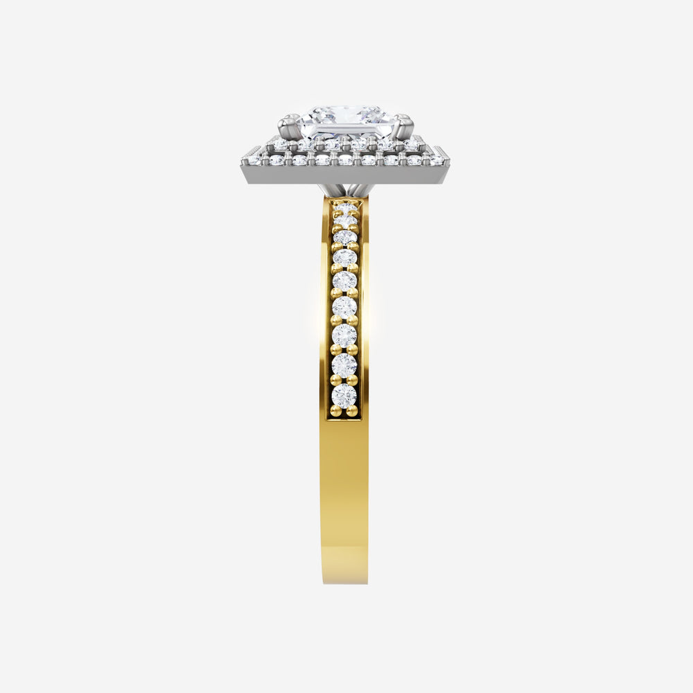 You’ve designed a ring that reflects lasting elegance and grace! Crafted from 18k Yellow White Dual Tone, this exquisite Princess lab-grown diamond is the centerpiece of this unique design. This Single Pave Shank with a Double Halo head showcases the brilliance of the Princess diamond, creating a timeless look. Ideal for those who seek both beauty and meaning, this ring will stand as a testament to cherished memories.