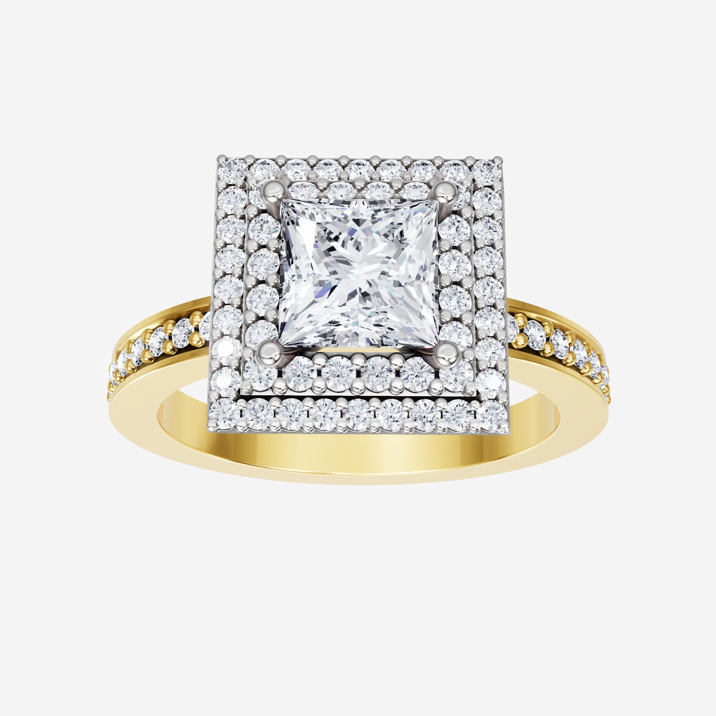 You’ve designed a ring that reflects lasting elegance and grace! Crafted from 18k Yellow White Dual Tone, this exquisite Princess lab-grown diamond is the centerpiece of this unique design. This Single Pave Shank with a Double Halo head showcases the brilliance of the Princess diamond, creating a timeless look. With this ring, celebrate every moment of joy, success, and love.