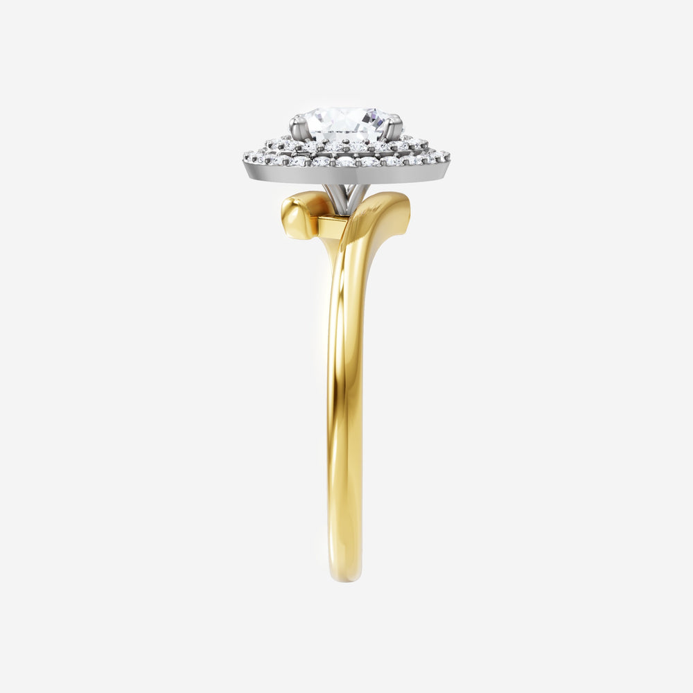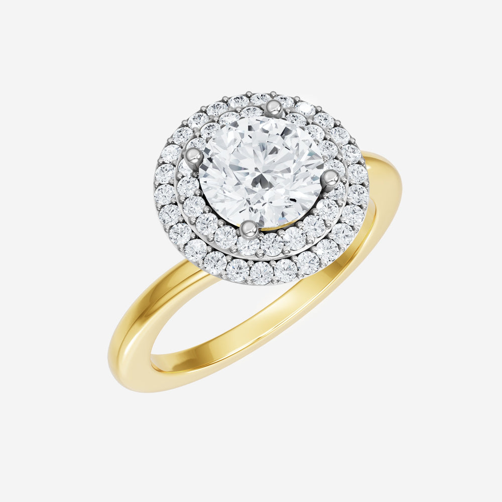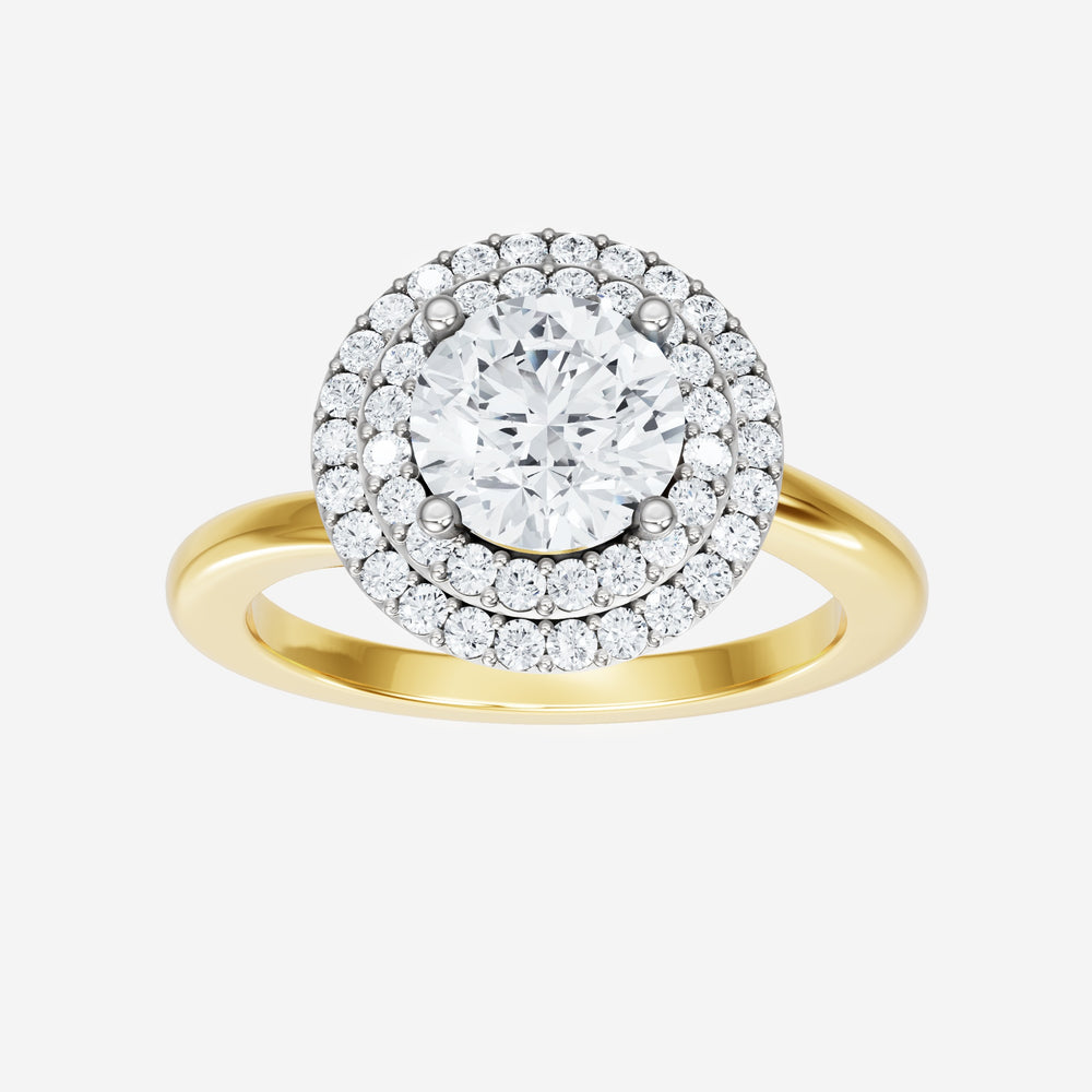 You’ve designed a ring that reflects lasting elegance and grace! Crafted from 18k Yellow White Dual Tone, this exquisite Round lab-grown diamond is the centerpiece of this unique design. This Bypass Shank with a Double Halo head showcases the brilliance of the Round diamond, creating a timeless look. Ideal for those who seek both beauty and meaning, this ring will stand as a testament to cherished memories.