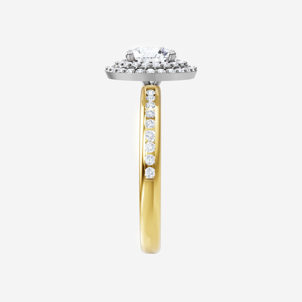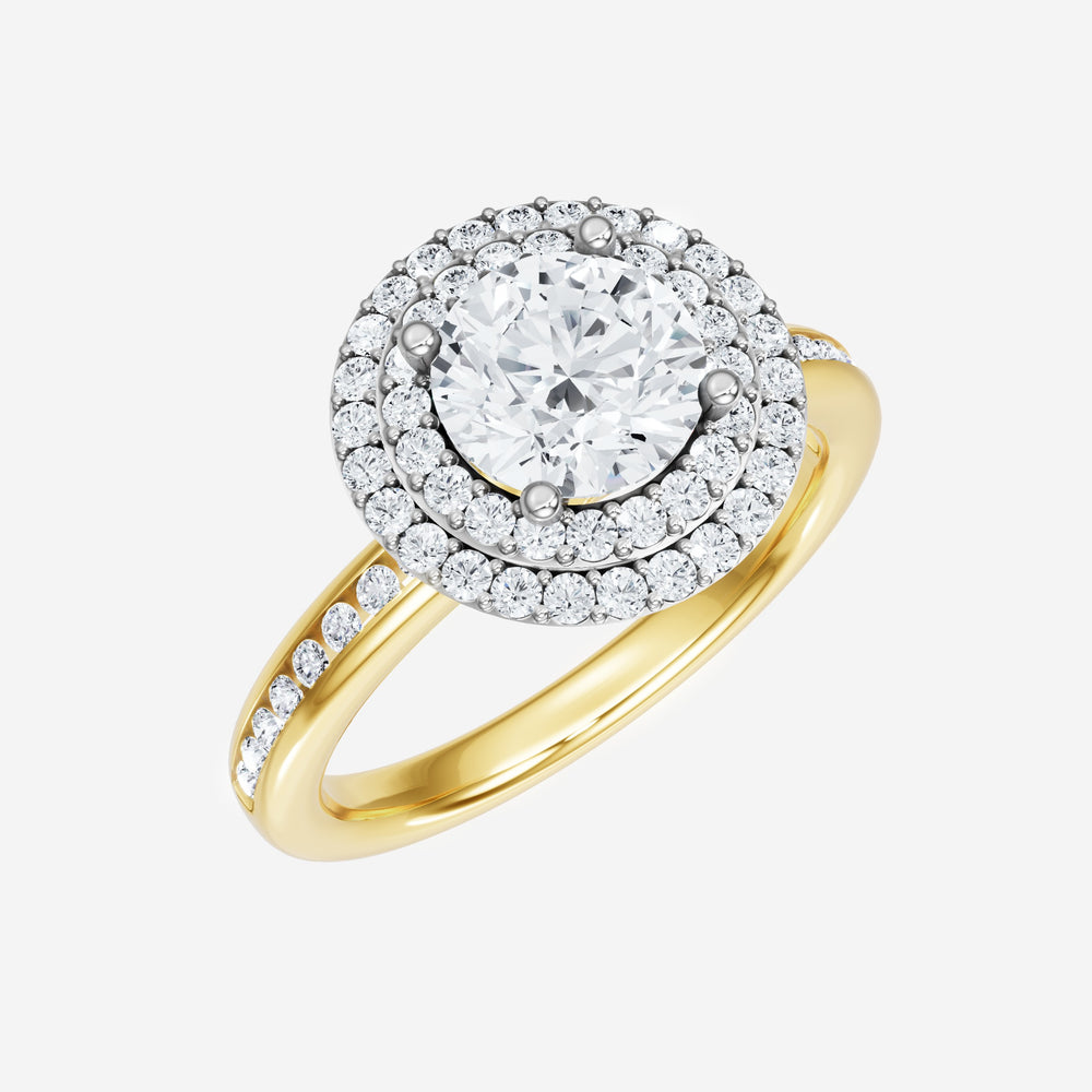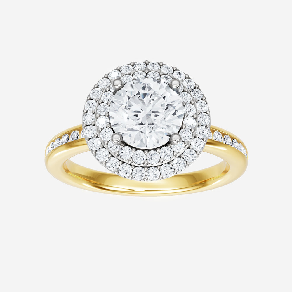 You’ve designed a ring that reflects lasting elegance and grace! Crafted from 18k Yellow White Dual Tone, this exquisite Round lab-grown diamond is the centerpiece of this unique design. This Channel Set Shank with a Double Halo head showcases the brilliance of the Round diamond, creating a timeless look. Whether as a gift or a personal treasure, this ring will forever symbolize the most meaningful moments in life.