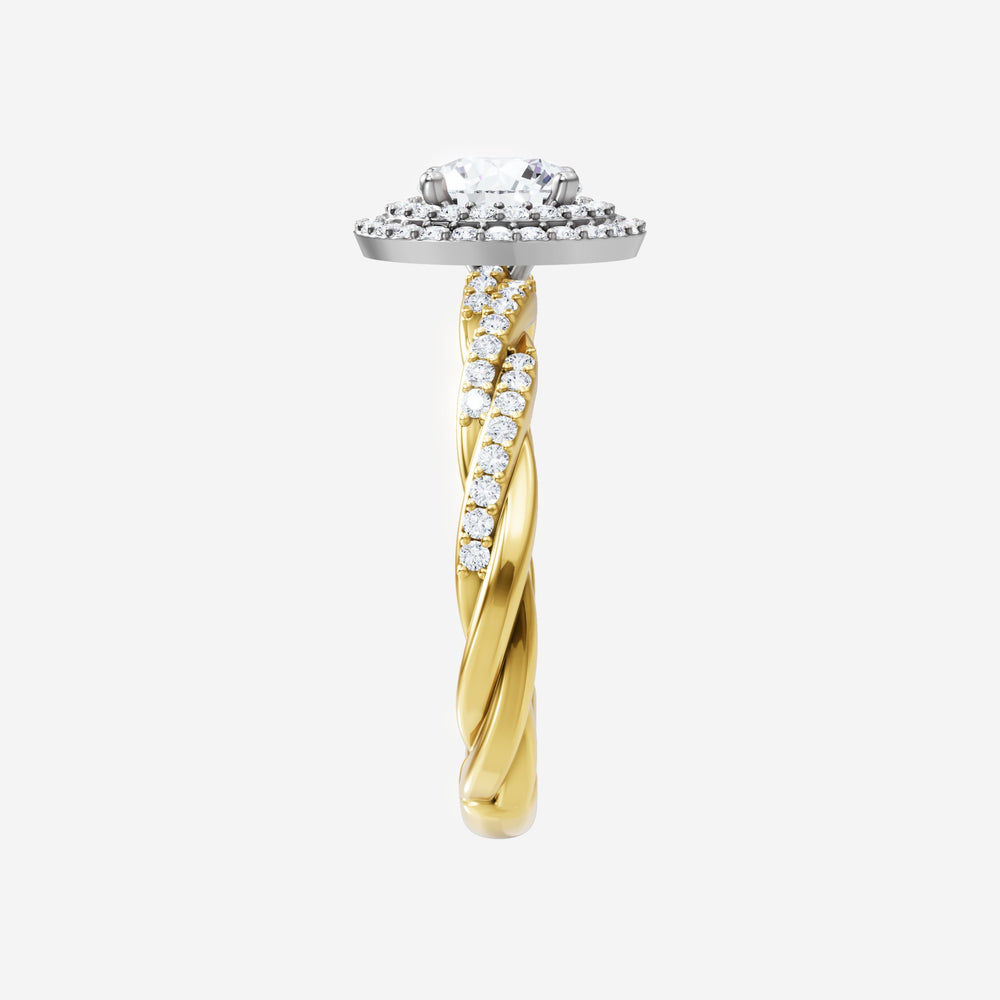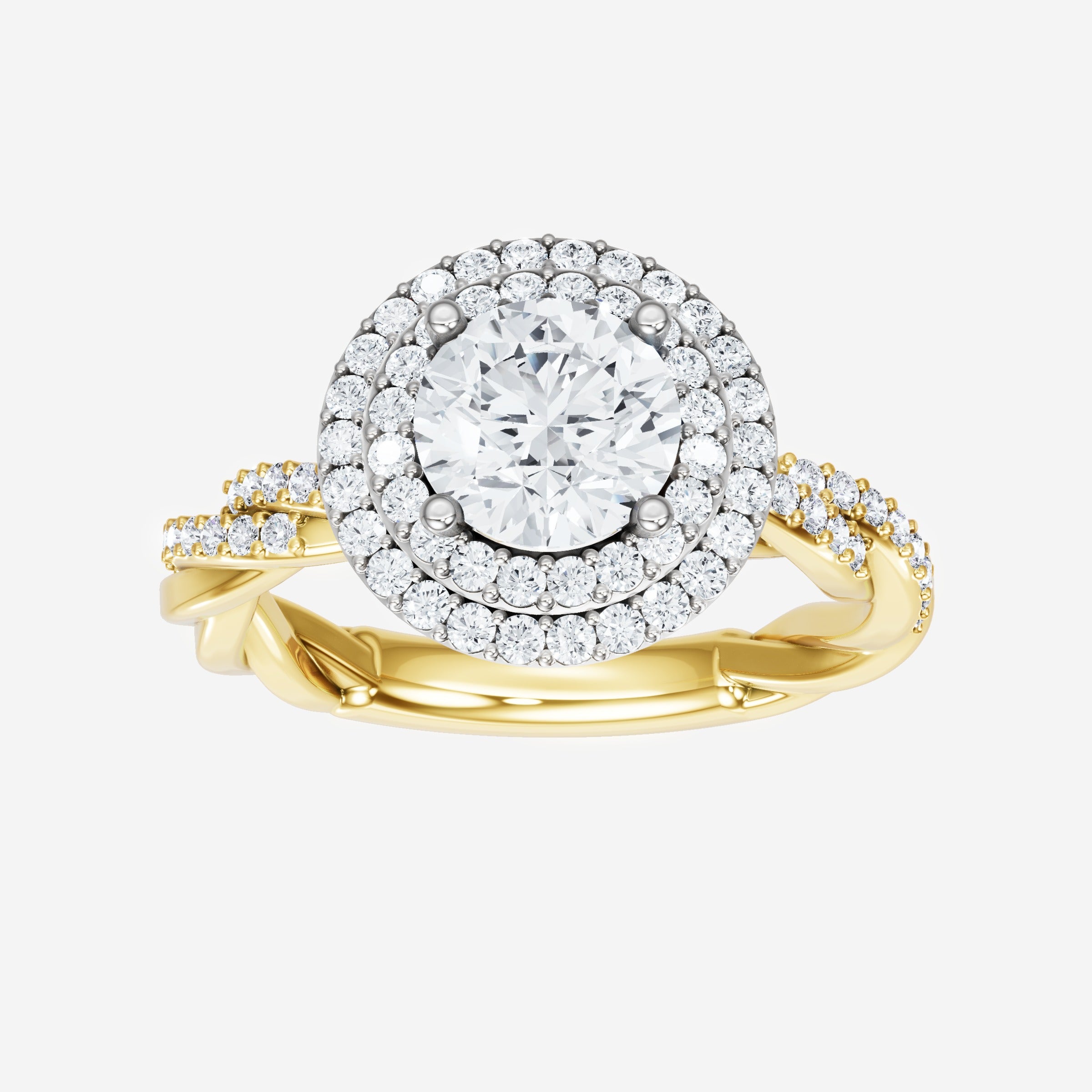 You’ve designed a ring that reflects lasting elegance and grace! Crafted from 18k Yellow White Dual Tone, this exquisite Round lab-grown diamond is the centerpiece of this unique design. This Rope Diamond Shank with a Double Halo head showcases the brilliance of the Round diamond, creating a timeless look. A perfect choice to celebrate love, commitment, and everything in between.