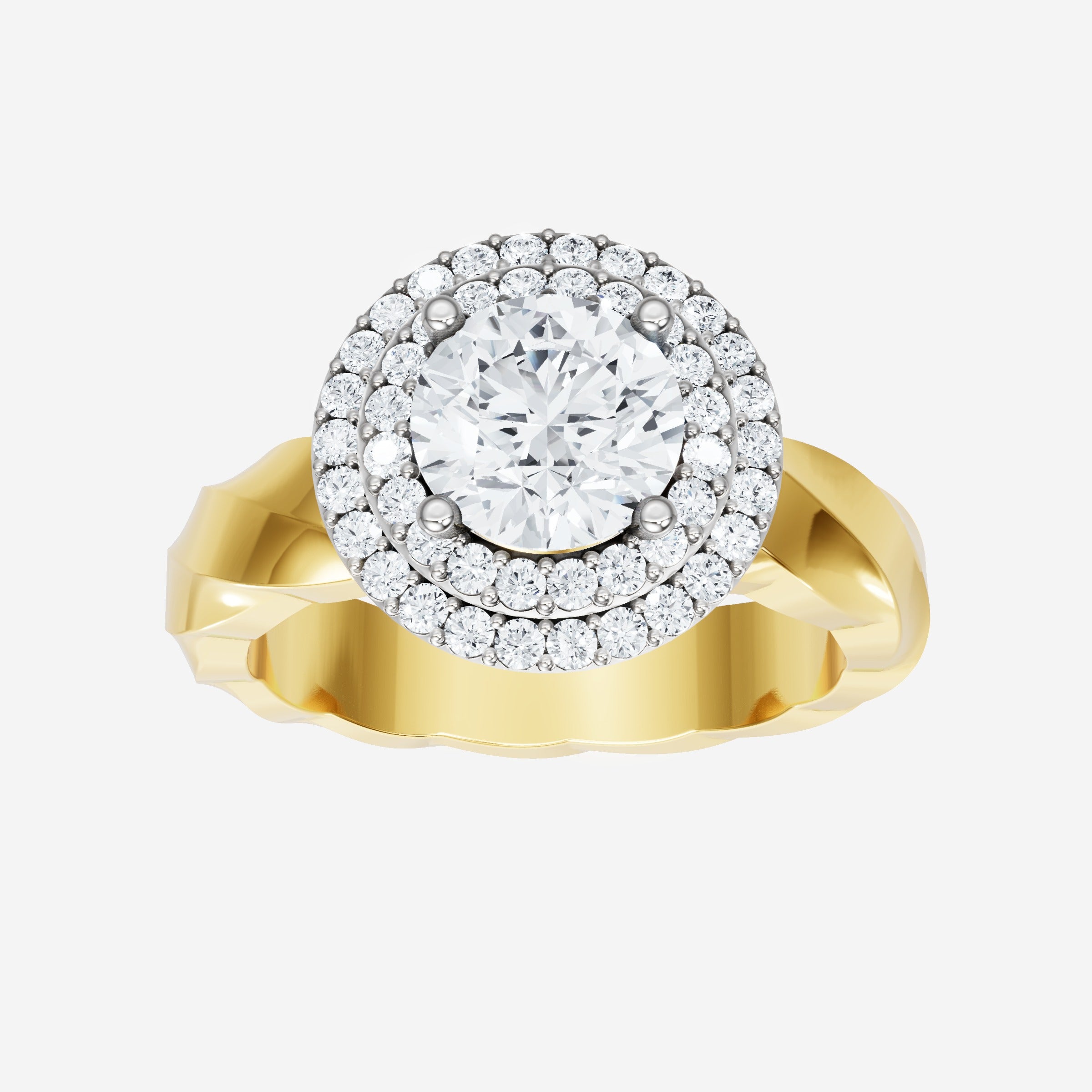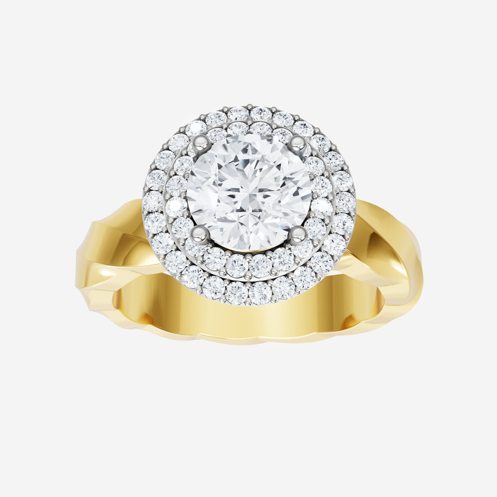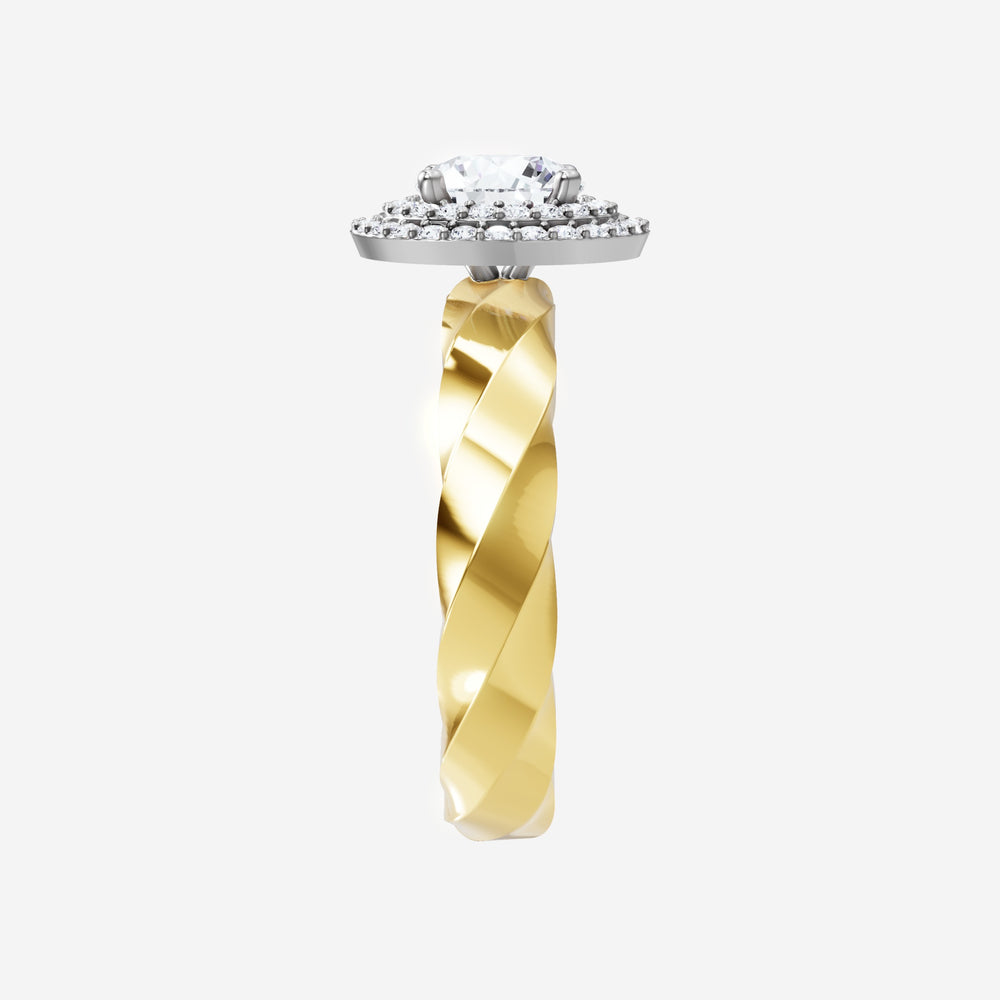 You’ve designed a ring that reflects lasting elegance and grace! Crafted from 18k Yellow White Dual Tone, this exquisite Round lab-grown diamond is the centerpiece of this unique design. This Twisted Shank with a Double Halo head showcases the brilliance of the Round diamond, creating a timeless look. Whether as a gift or a personal treasure, this ring will forever symbolize the most meaningful moments in life.