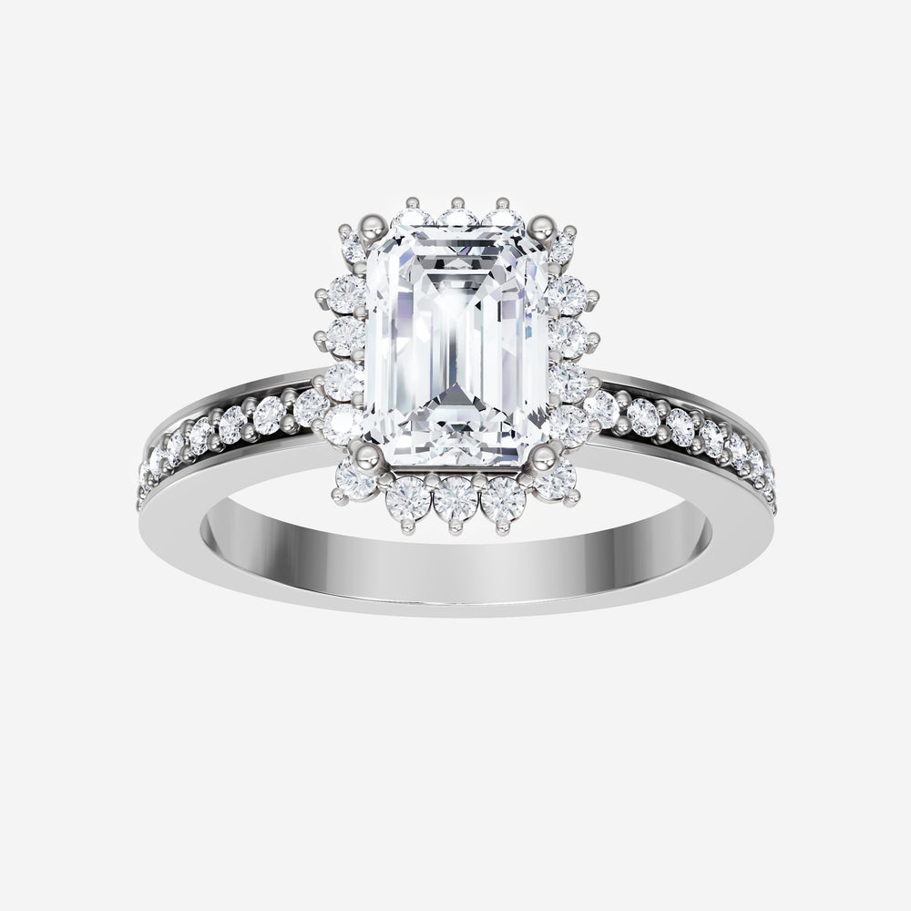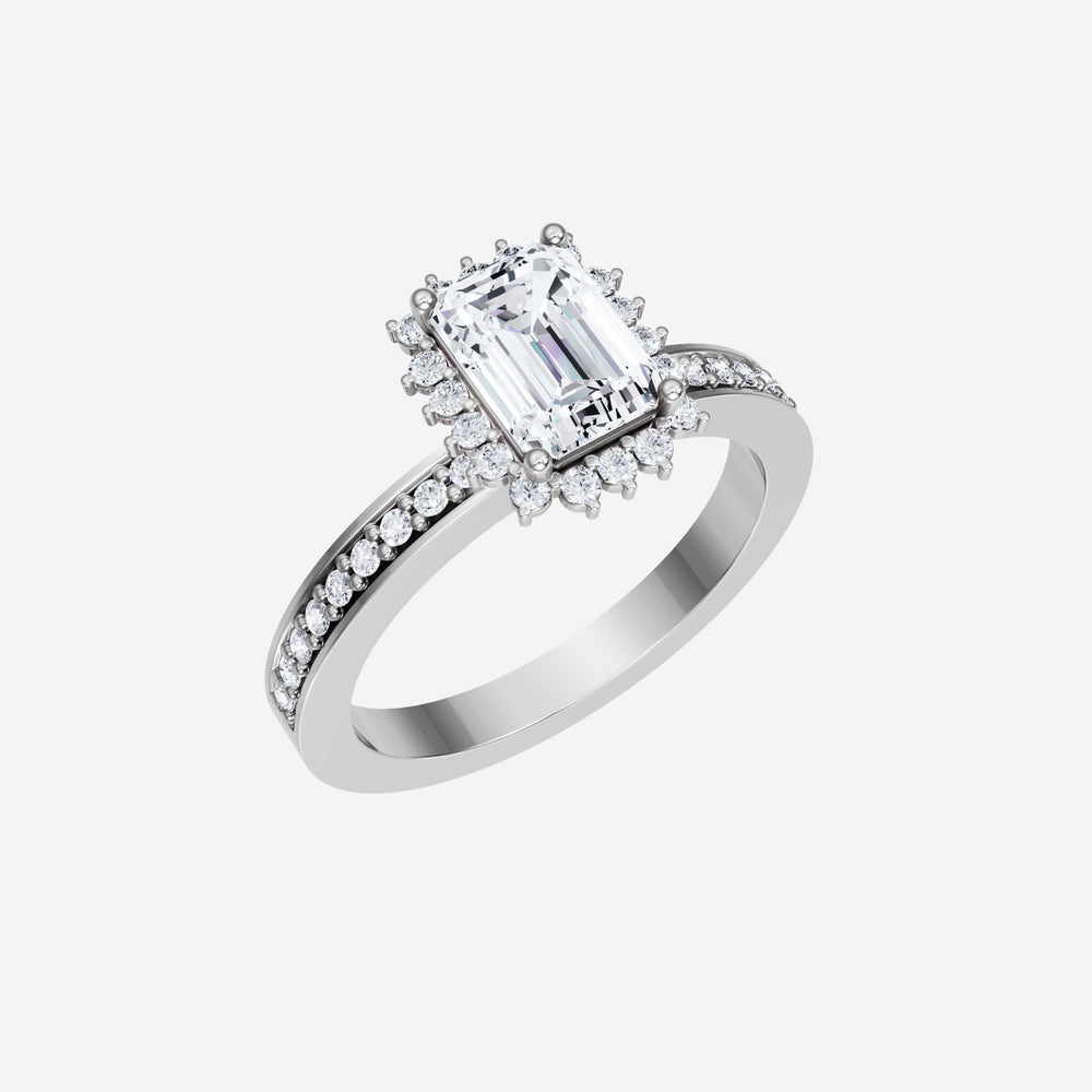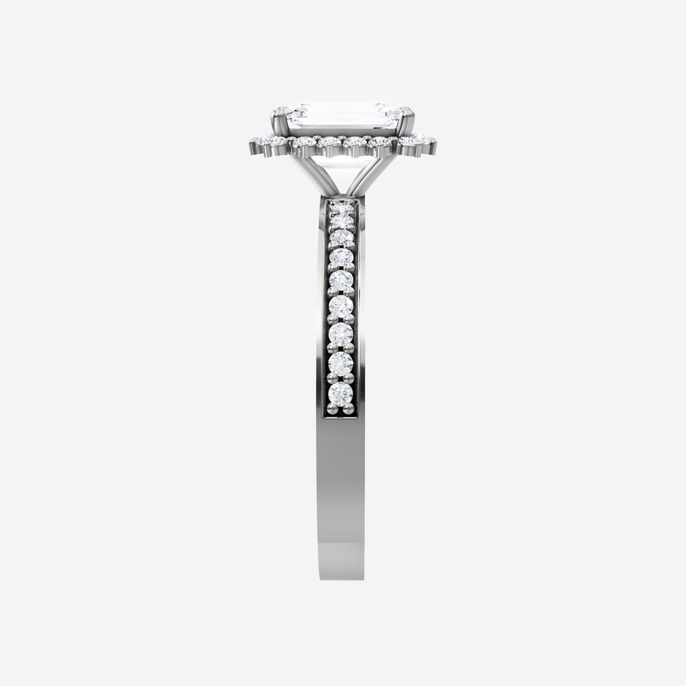 You’ve designed a ring that reflects lasting elegance and grace! Crafted from 950 Platinum, this exquisite Emerald lab-grown diamond is the centerpiece of this unique design. This Single Pave Shank with a Diana Halo head showcases the brilliance of the Emerald diamond, creating a timeless look. A perfect choice to celebrate love, commitment, and everything in between.