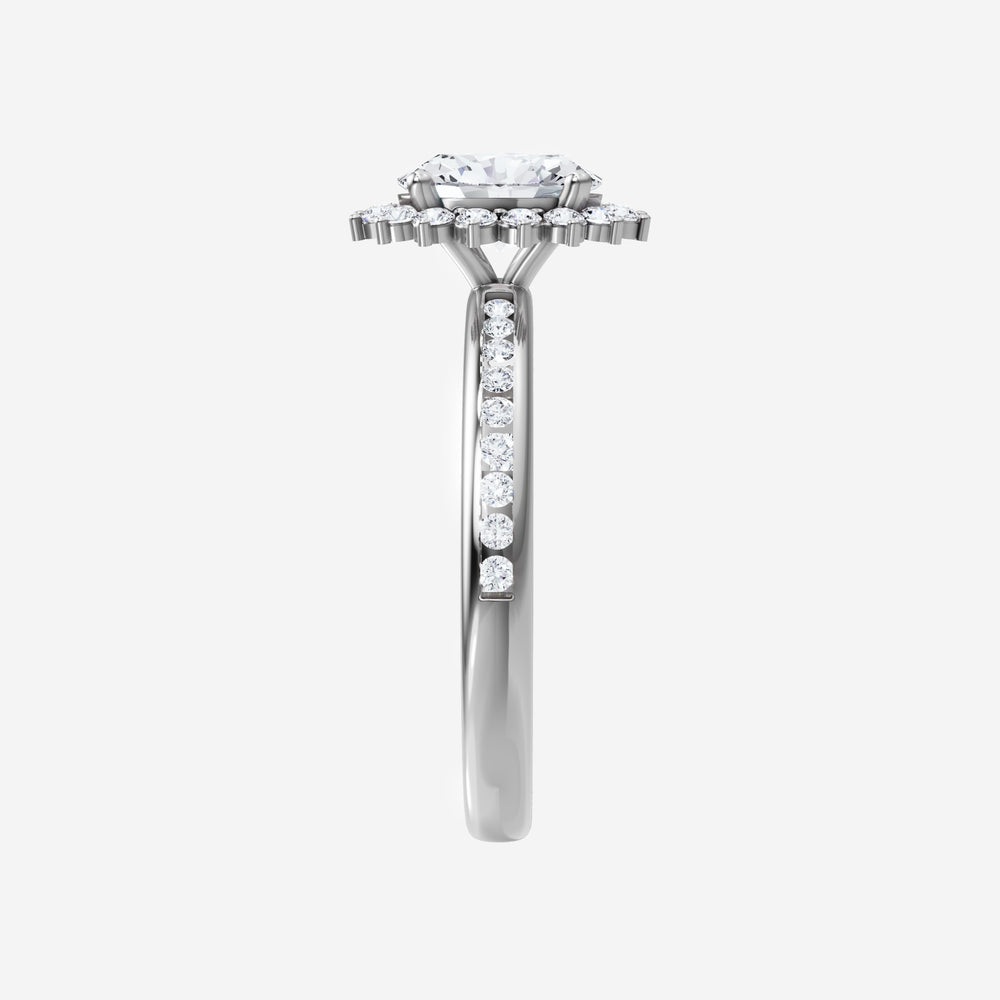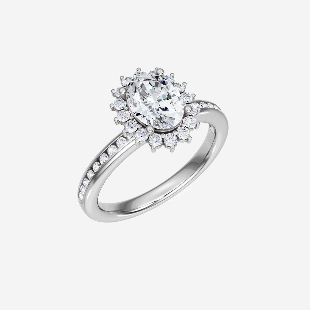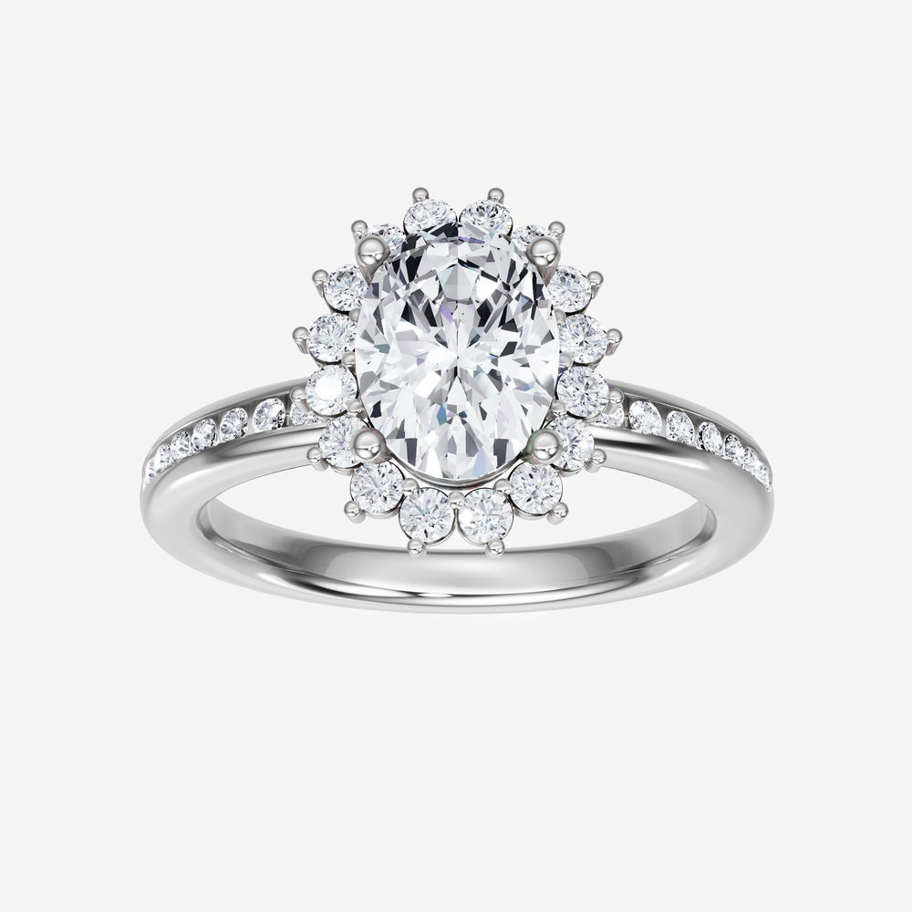 You’ve designed a ring that reflects lasting elegance and grace! Crafted from 950 Platinum, this exquisite Oval lab-grown diamond is the centerpiece of this unique design. This Channel Set Shank with a Diana Halo head showcases the brilliance of the Oval diamond, creating a timeless look. This elegant piece is the perfect symbol of love, strength, and timeless beauty.