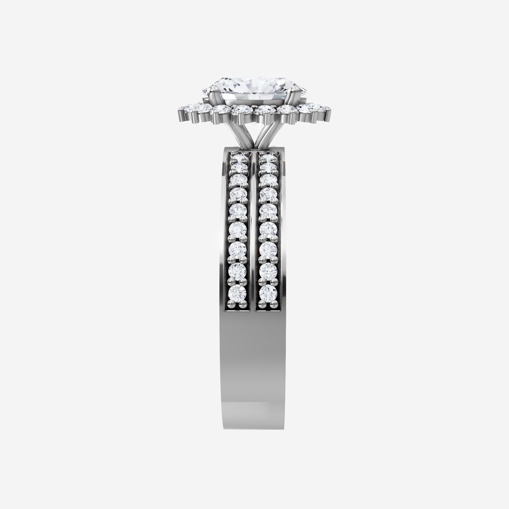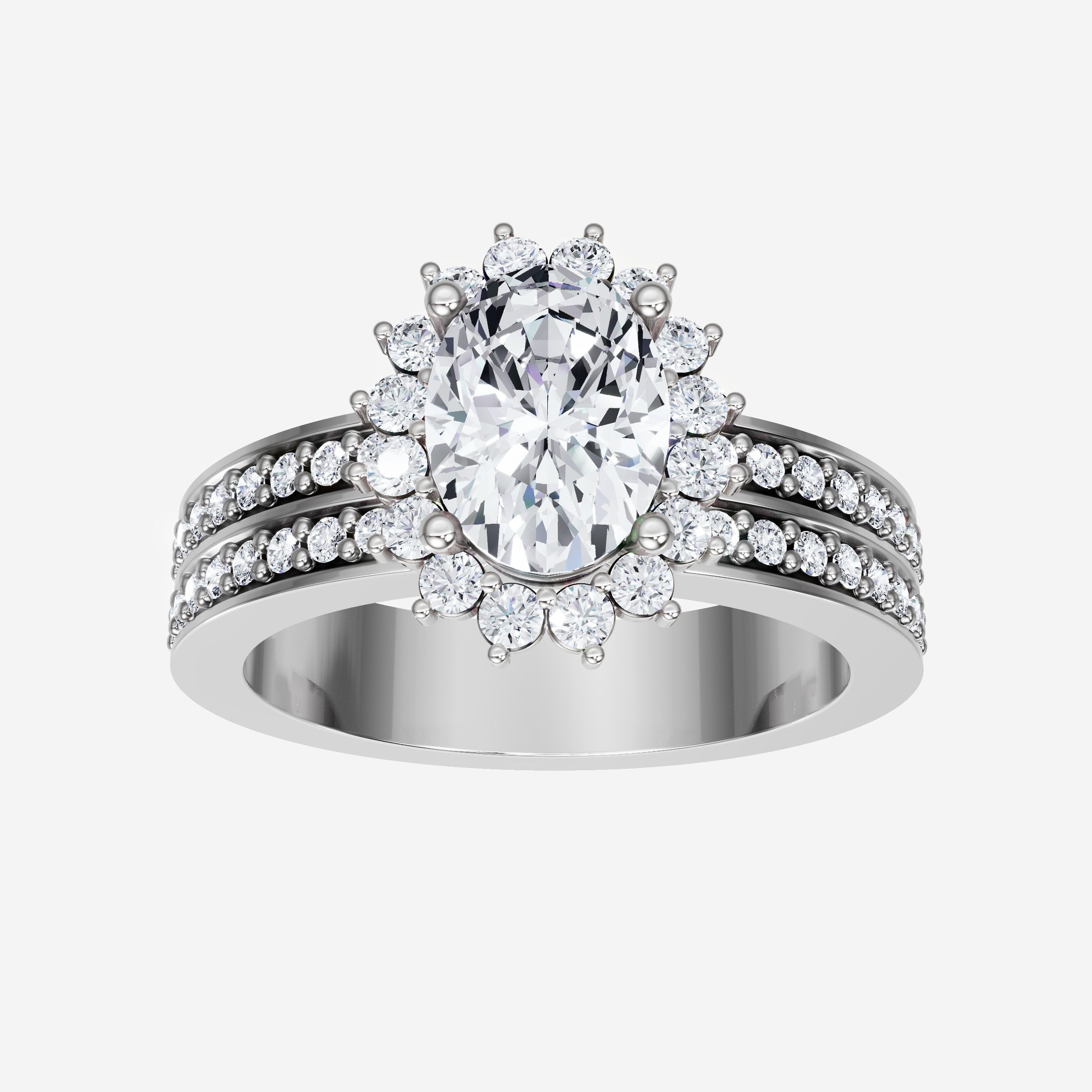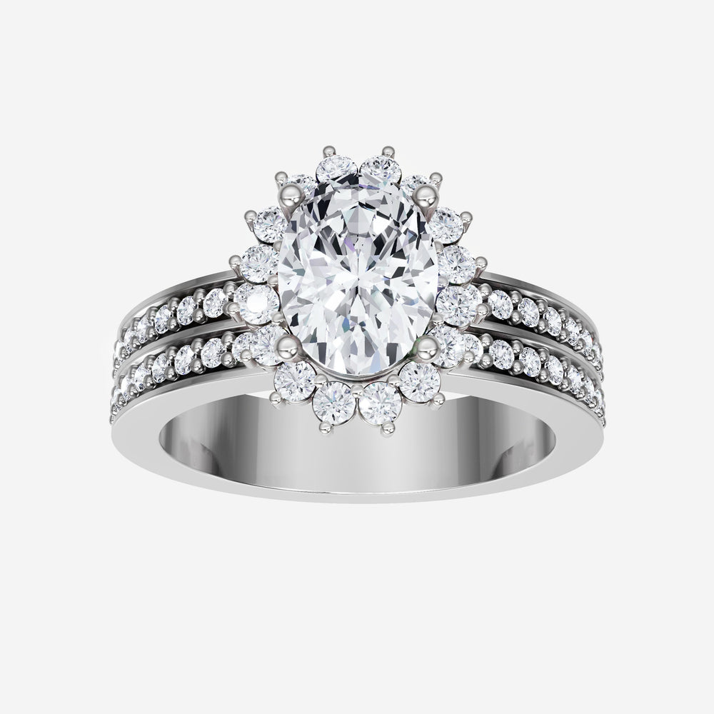 You’ve designed a ring that reflects lasting elegance and grace! Crafted from 950 Platinum, this exquisite Oval lab-grown diamond is the centerpiece of this unique design. This Double Row Pave with a Diana Halo head showcases the brilliance of the Oval diamond, creating a timeless look. This ring will become a cherished reminder of life's most treasured moments.