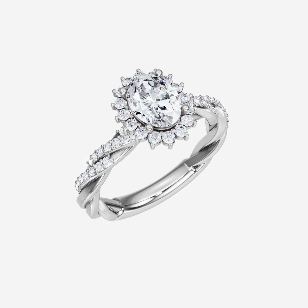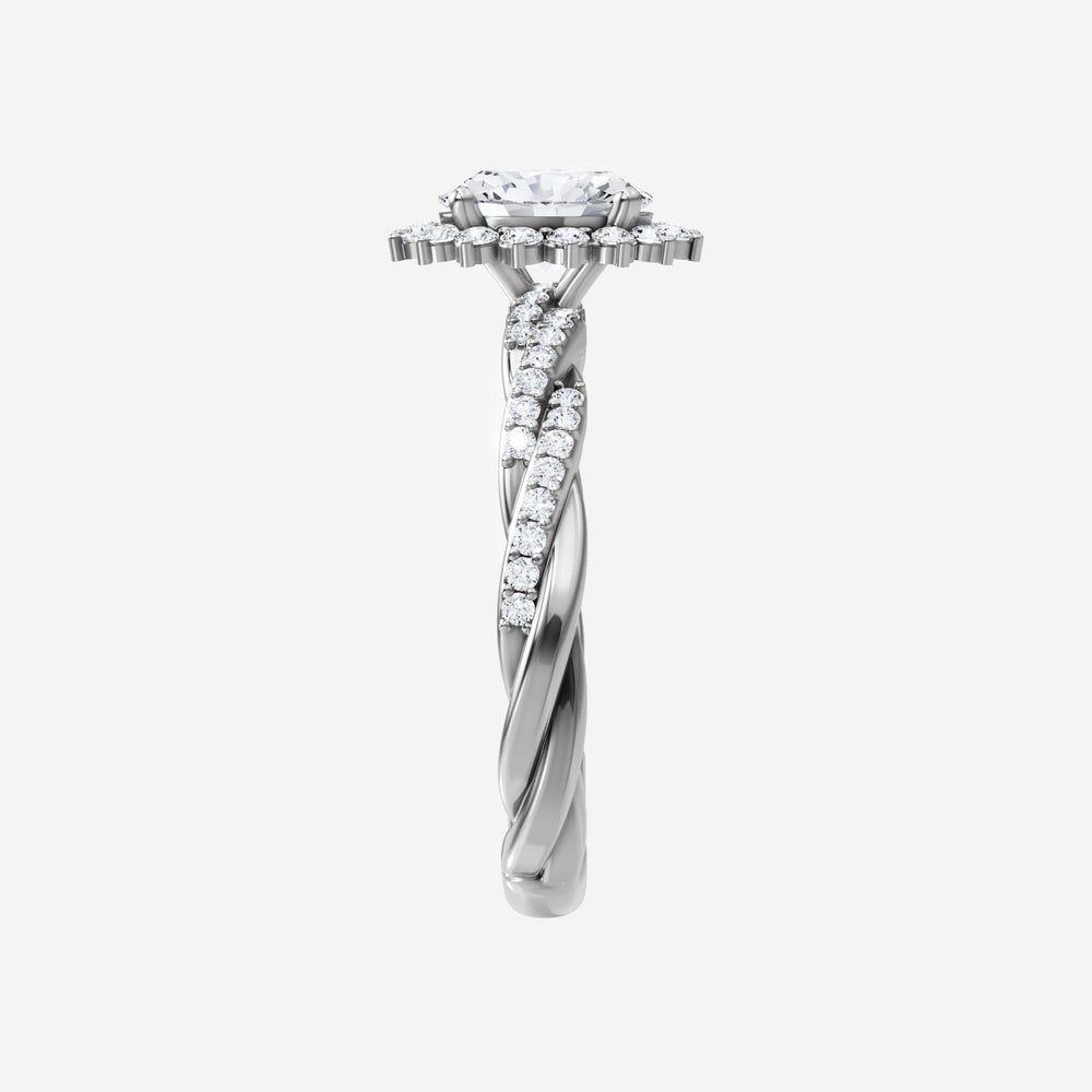 You’ve designed a ring that reflects lasting elegance and grace! Crafted from 950 Platinum, this exquisite Oval lab-grown diamond is the centerpiece of this unique design. This Rope Diamond Shank with a Diana Halo head showcases the brilliance of the Oval diamond, creating a timeless look. Ideal for those who seek both beauty and meaning, this ring will stand as a testament to cherished memories.