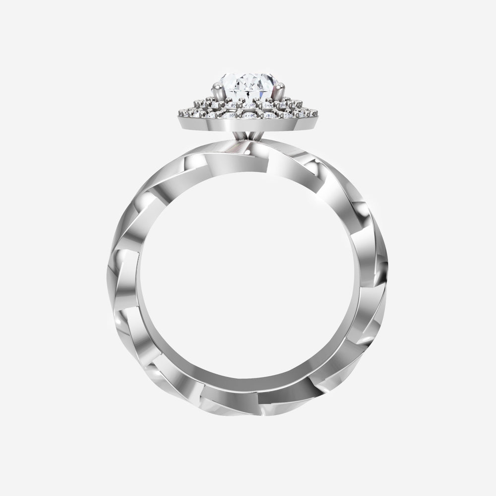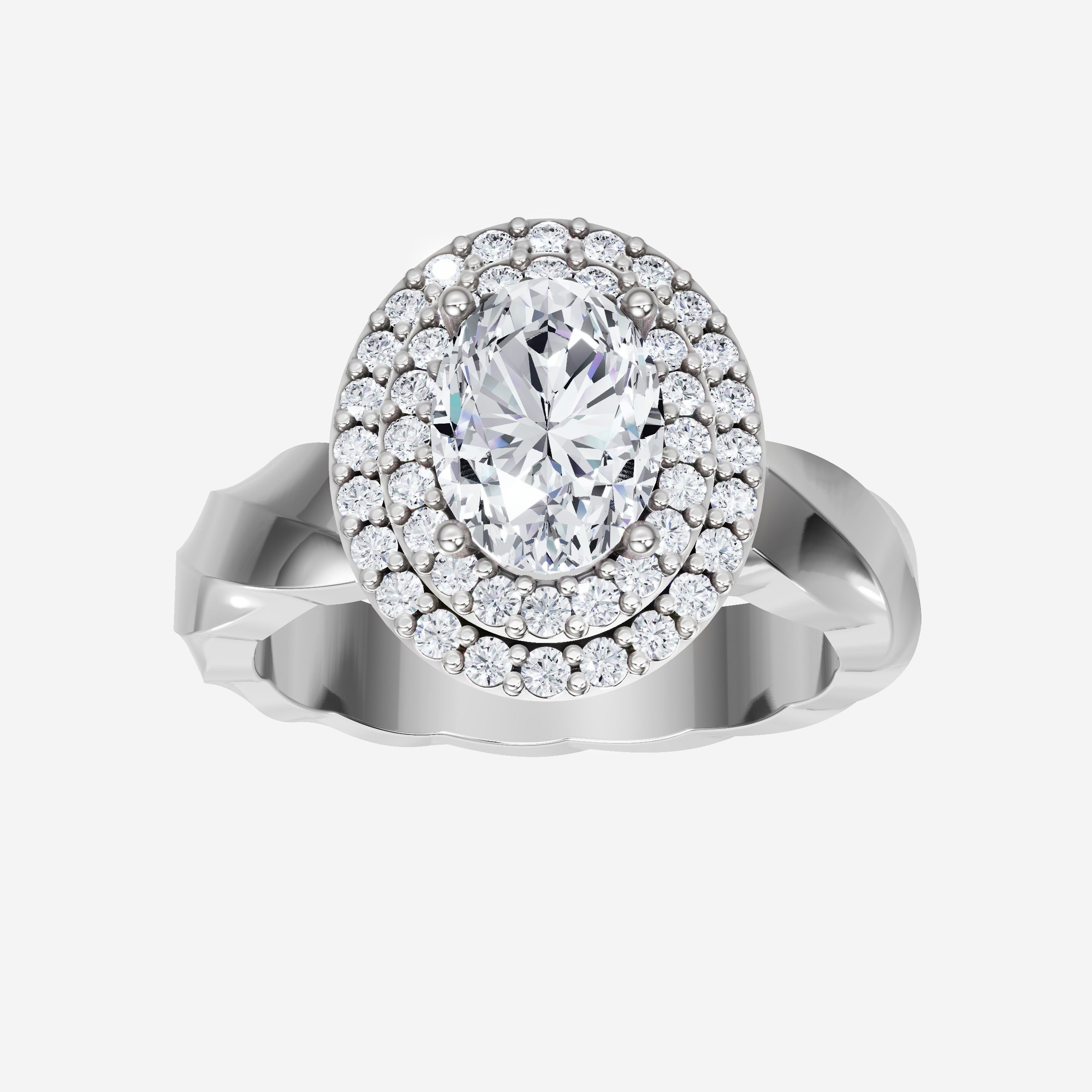 You’ve designed a ring that reflects lasting elegance and grace! Crafted from 950 Platinum, this exquisite Oval lab-grown diamond is the centerpiece of this unique design. This Twisted Shank with a Double Halo head showcases the brilliance of the Oval diamond, creating a timeless look. This elegant piece is the perfect symbol of love, strength, and timeless beauty.