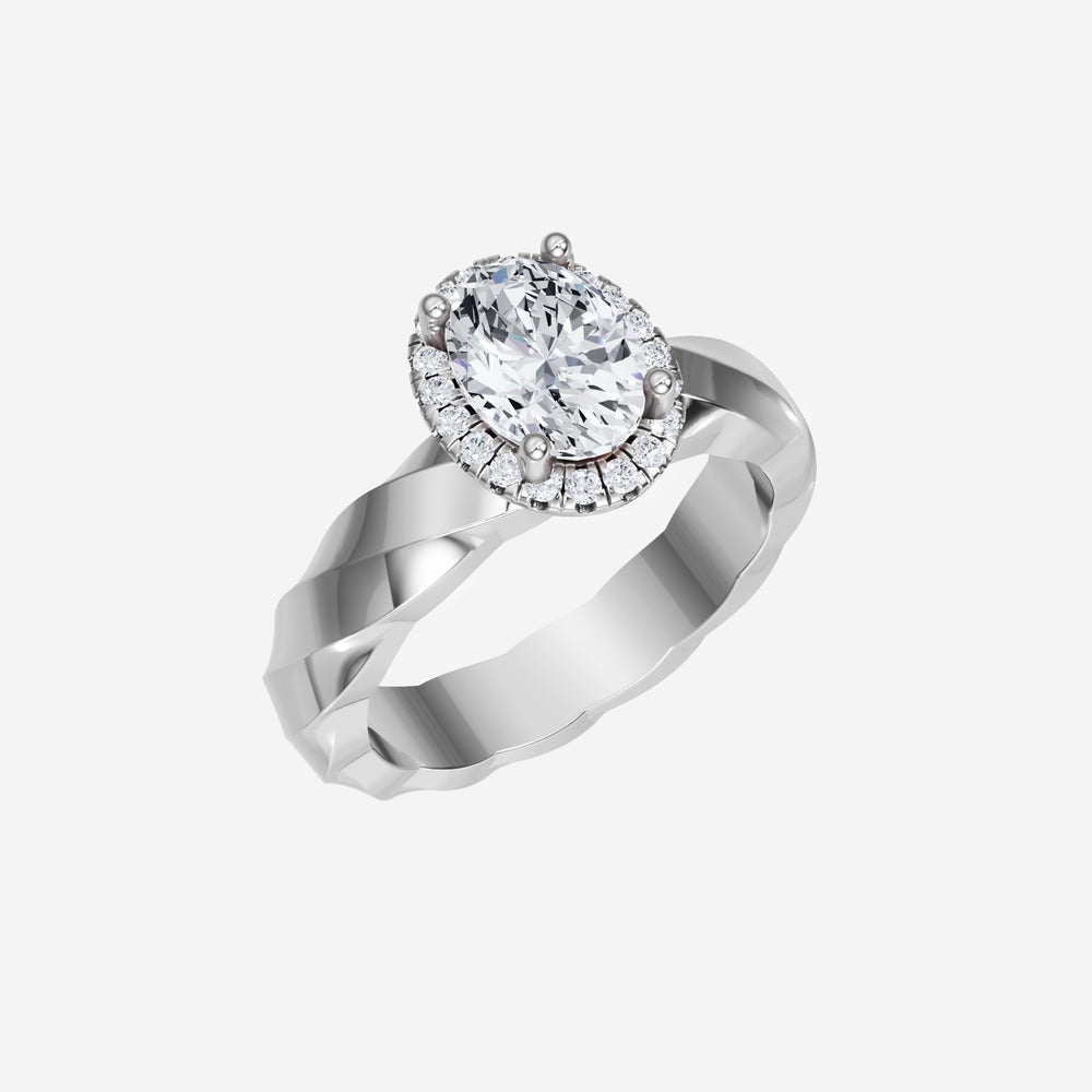 You’ve designed a ring that reflects lasting elegance and grace! Crafted from 950 Platinum, this exquisite Oval lab-grown diamond is the centerpiece of this unique design. This Twisted Shank with a Micro Halo head showcases the brilliance of the Oval diamond, creating a timeless look. Ideal for those who seek both beauty and meaning, this ring will stand as a testament to cherished memories.