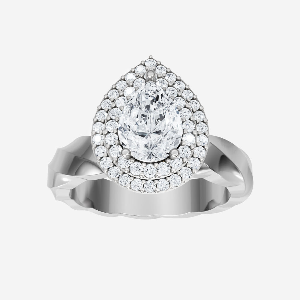 You’ve designed a ring that reflects lasting elegance and grace! Crafted from 950 Platinum, this exquisite Pear lab-grown diamond is the centerpiece of this unique design. This Twisted Shank with a Double Halo head showcases the brilliance of the Pear diamond, creating a timeless look. This ring will become a cherished reminder of life's most treasured moments.