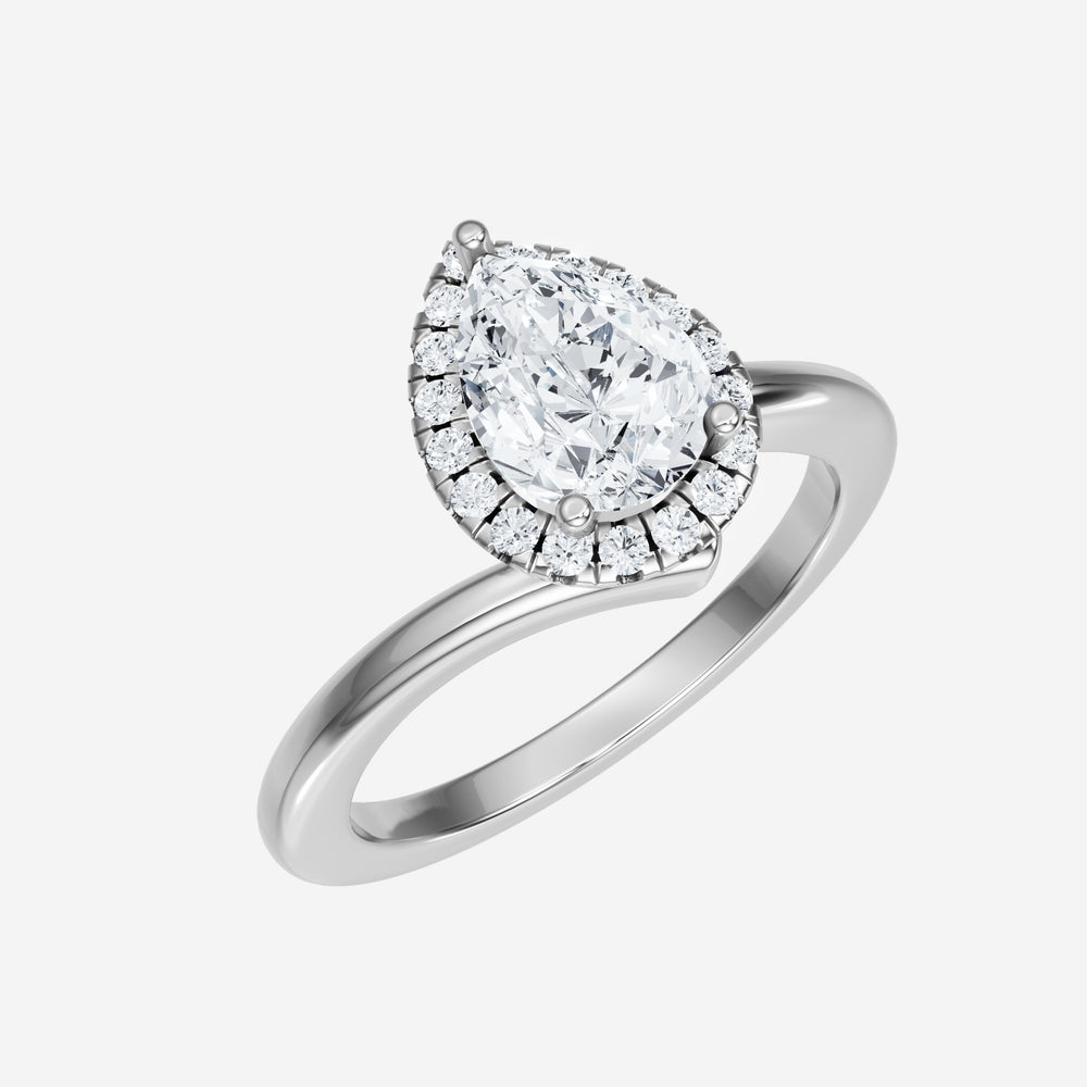 You’ve designed a ring that reflects lasting elegance and grace! Crafted from 950 Platinum, this exquisite Pear lab-grown diamond is the centerpiece of this unique design. This Bypass Shank with a Micro Halo head showcases the brilliance of the Pear diamond, creating a timeless look. This stunning ring makes the perfect symbol of everlasting love and devotion.