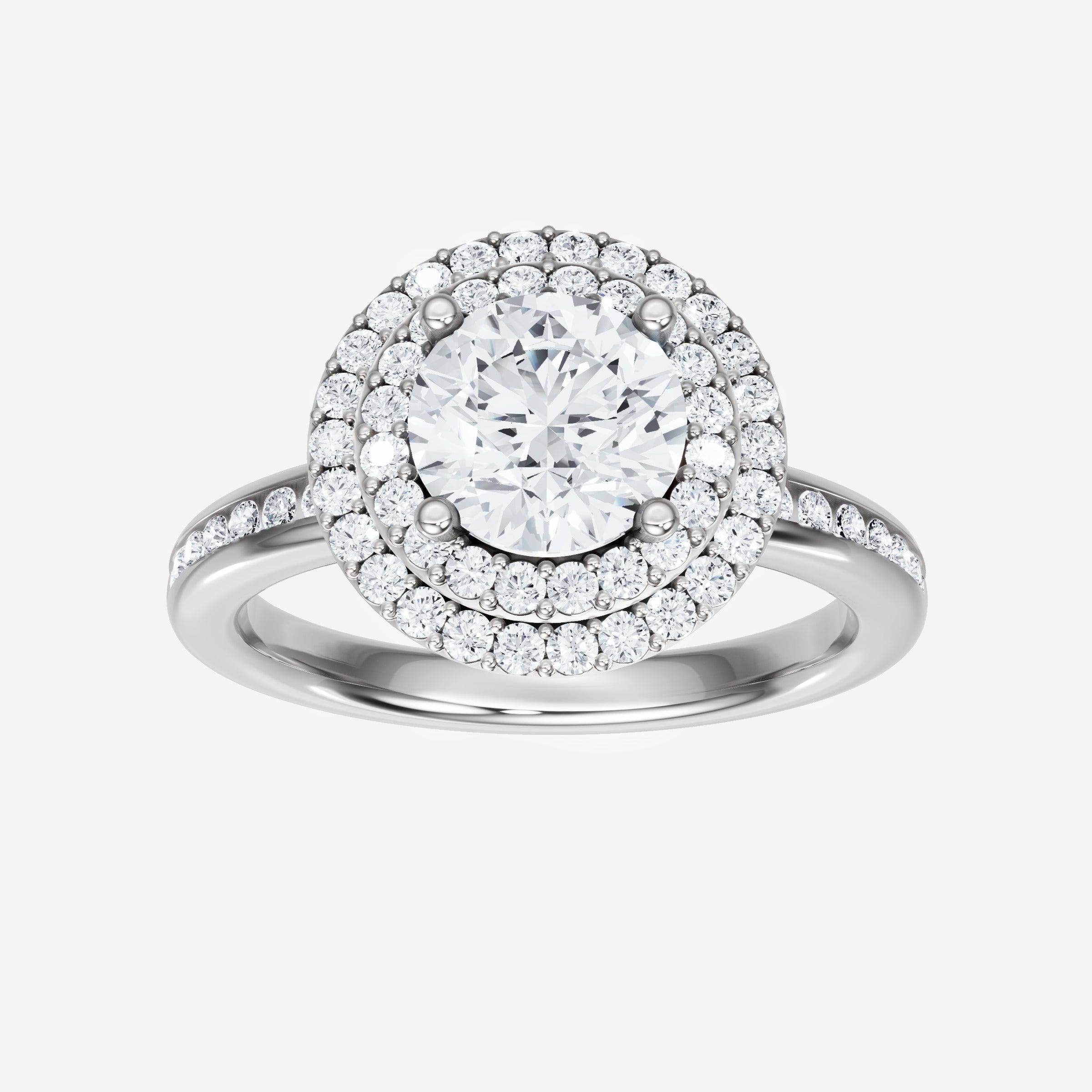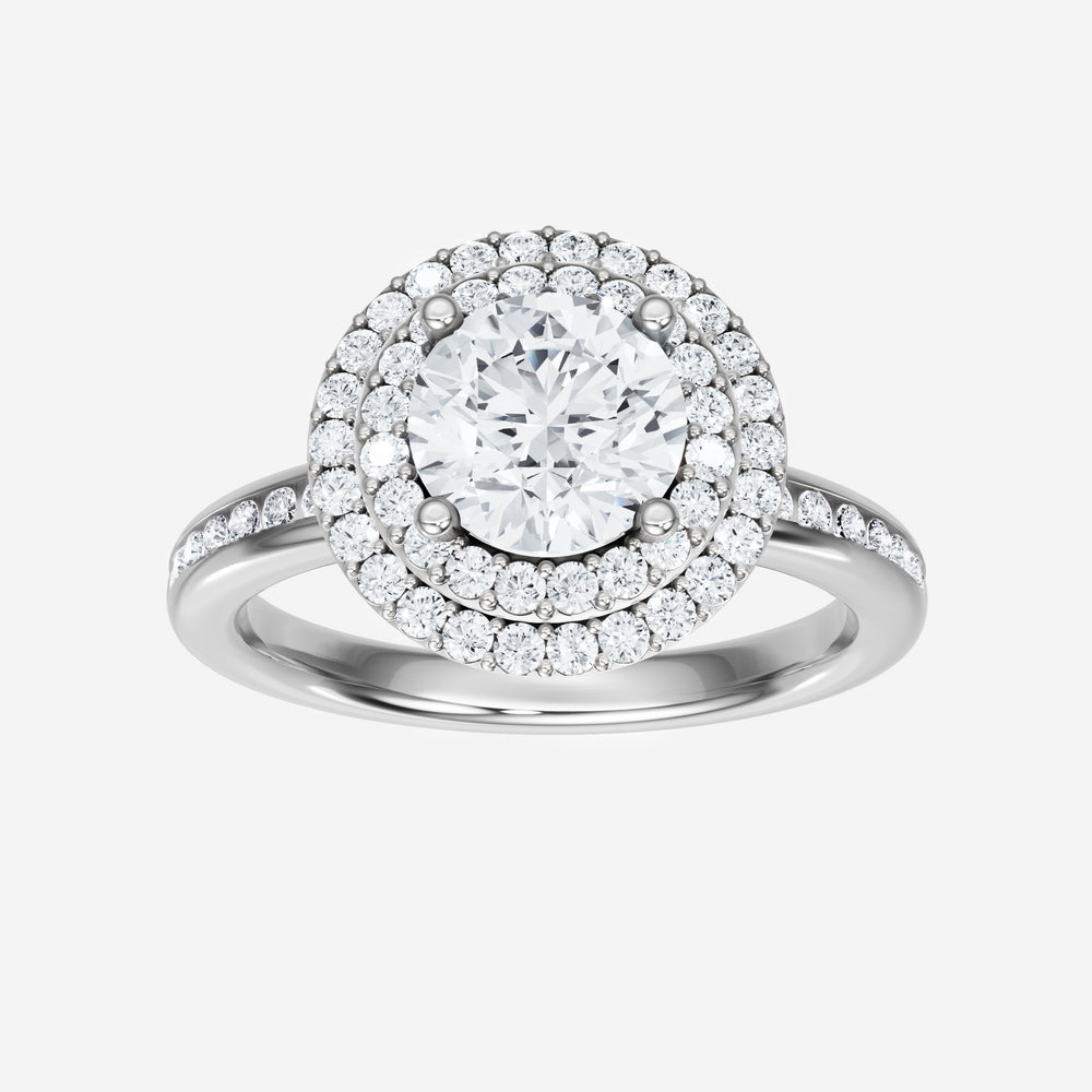 You’ve designed a ring that reflects lasting elegance and grace! Crafted from 950 Platinum, this exquisite Round lab-grown diamond is the centerpiece of this unique design. This Channel Set Shank with a Double Halo head showcases the brilliance of the Round diamond, creating a timeless look. A perfect choice to celebrate love, commitment, and everything in between.