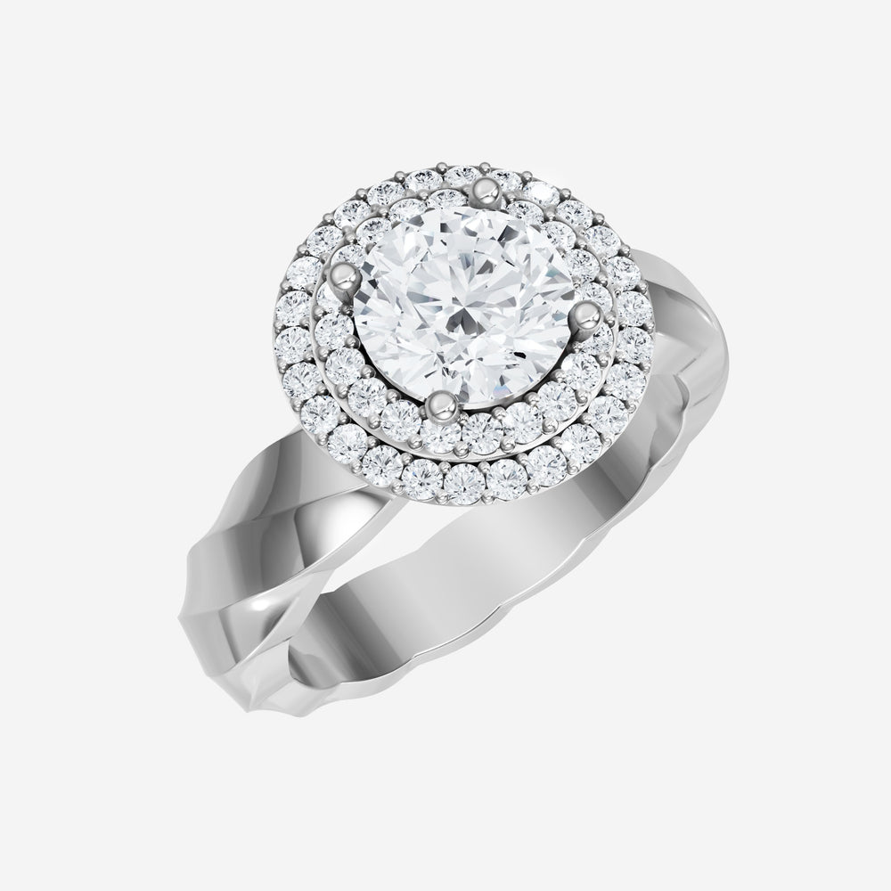You’ve designed a ring that reflects lasting elegance and grace! Crafted from 950 Platinum, this exquisite Round lab-grown diamond is the centerpiece of this unique design. This Twisted Shank with a Double Halo head showcases the brilliance of the Round diamond, creating a timeless look. With this ring, celebrate every moment of joy, success, and love.