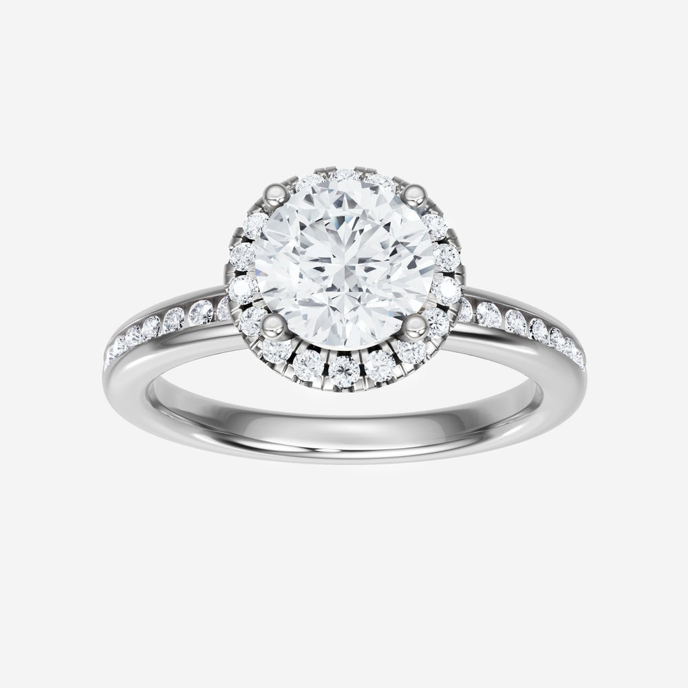 You’ve designed a ring that reflects lasting elegance and grace! Crafted from 950 Platinum, this exquisite Round lab-grown diamond is the centerpiece of this unique design. This Channel Set Shank with a Micro Halo head showcases the brilliance of the Round diamond, creating a timeless look. It's a piece of elegance and beauty, perfect for marking life's most beautiful occasions.