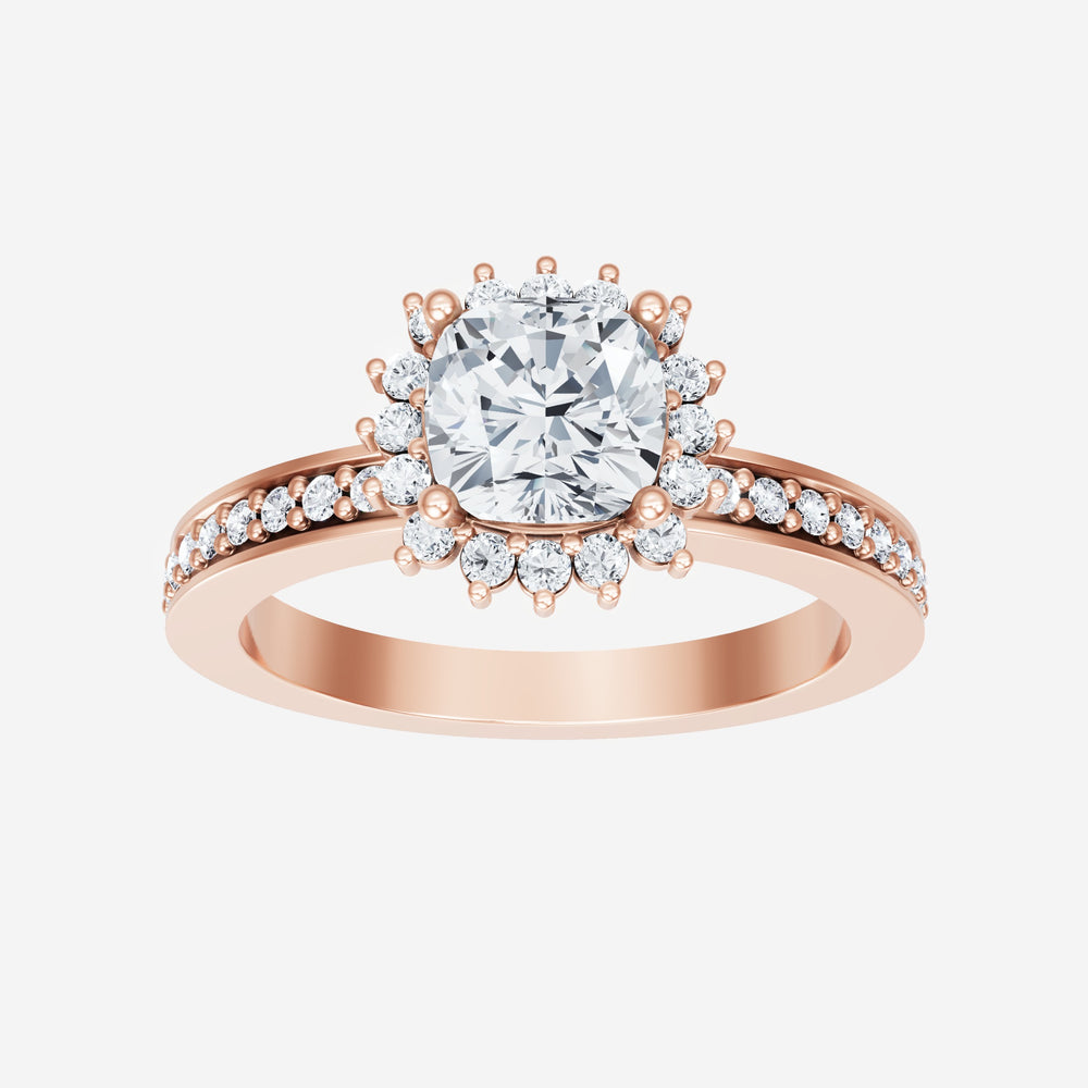 You’ve designed a ring that reflects lasting elegance and grace! Crafted from 14k Rose Gold, this exquisite Cushion lab-grown diamond is the centerpiece of this unique design. This Single Pave Shank with a Diana Halo head showcases the brilliance of the Cushion diamond, creating a timeless look. Whether as a gift or a personal treasure, this ring will forever symbolize the most meaningful moments in life.