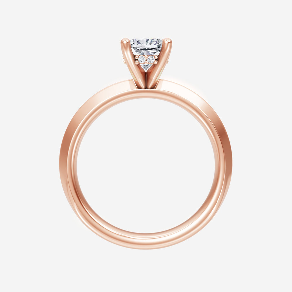 You’ve designed a ring that reflects lasting elegance and grace! Crafted from 14k Rose Gold, this exquisite Cushion lab-grown diamond is the centerpiece of this unique design. This Knife Edge Shank with a Hidden Halo head showcases the brilliance of the Cushion diamond, creating a timeless look. This ring will become a cherished reminder of life's most treasured moments.