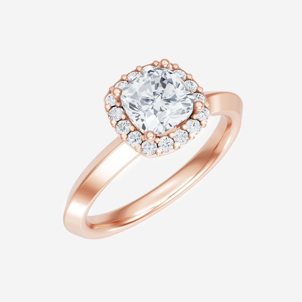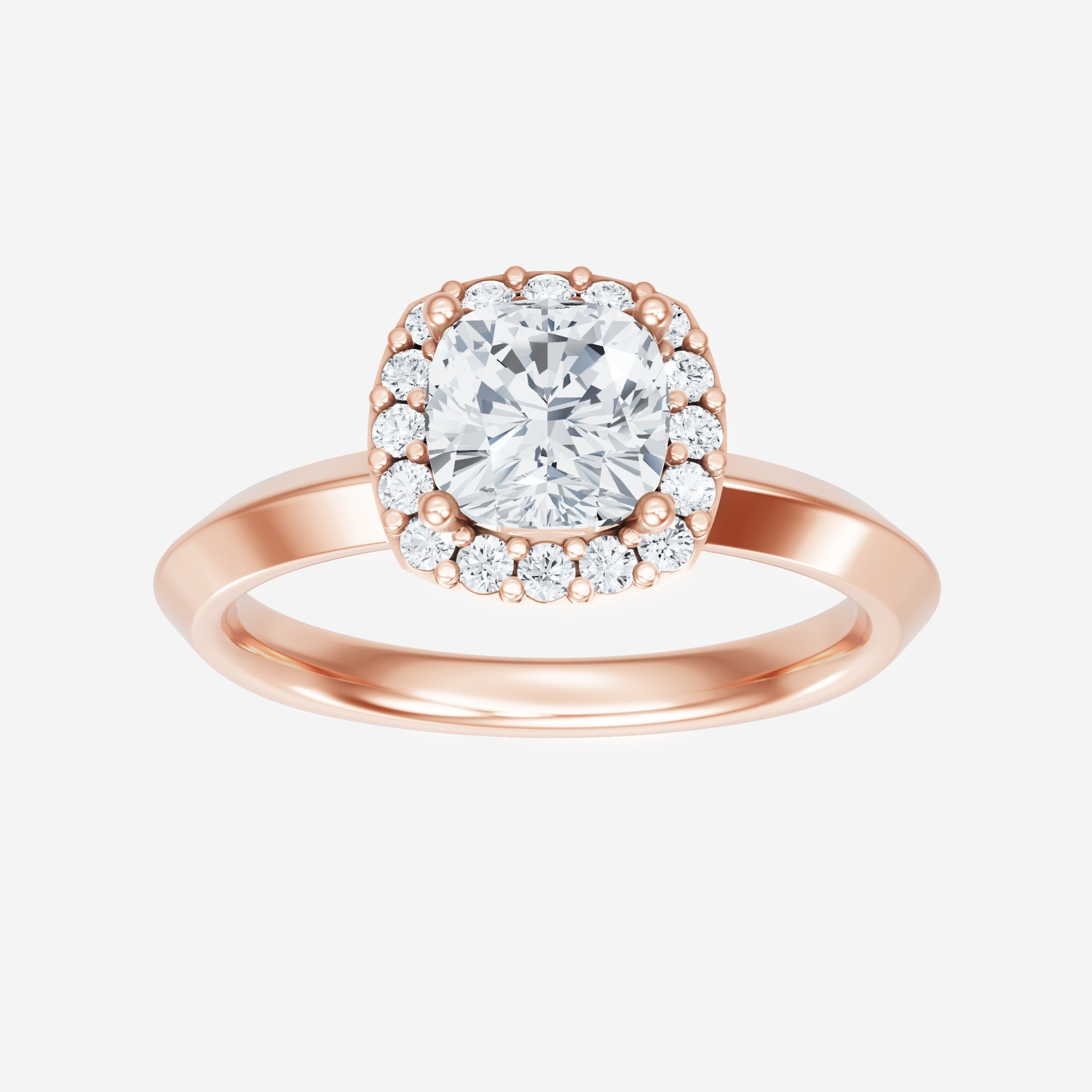 You’ve designed a ring that reflects lasting elegance and grace! Crafted from 14k Rose Gold, this exquisite Cushion lab-grown diamond is the centerpiece of this unique design. This Knife Edge Shank with a Single Halo head showcases the brilliance of the Cushion diamond, creating a timeless look. Whether as a gift or a personal treasure, this ring will forever symbolize the most meaningful moments in life.