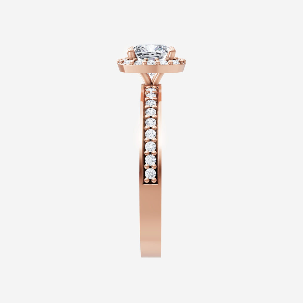 You’ve designed a ring that reflects lasting elegance and grace! Crafted from 14k Rose Gold, this exquisite Cushion lab-grown diamond is the centerpiece of this unique design. This Single Pave Shank with a Single Halo head showcases the brilliance of the Cushion diamond, creating a timeless look. It's a piece of elegance and beauty, perfect for marking life's most beautiful occasions.