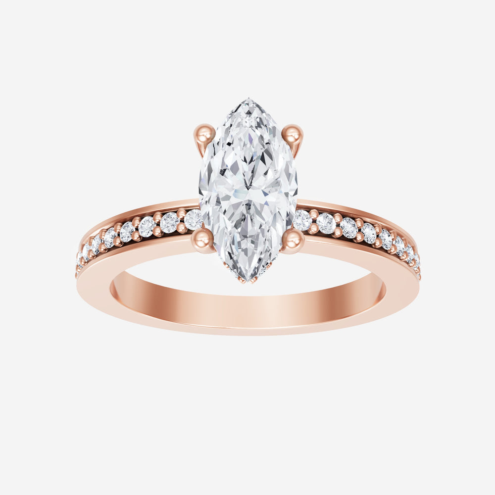 You’ve designed a ring that reflects lasting elegance and grace! Crafted from 14k Rose Gold, this exquisite Marquise lab-grown diamond is the centerpiece of this unique design. This Single Pave Shank with a Hidden Halo head showcases the brilliance of the Marquise diamond, creating a timeless look. Whether as a gift or a personal treasure, this ring will forever symbolize the most meaningful moments in life.