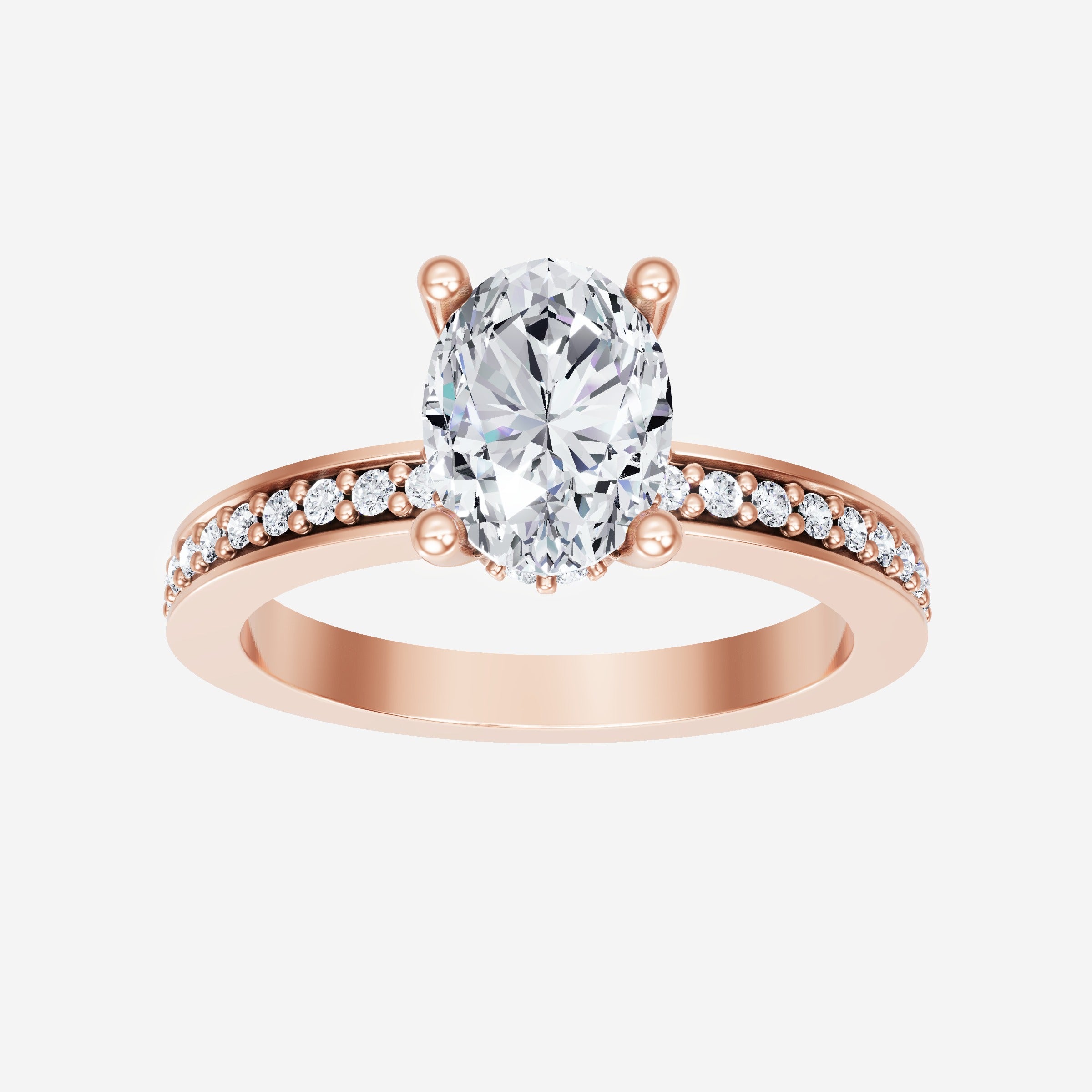 You’ve designed a ring that reflects lasting elegance and grace! Crafted from 14k Rose Gold, this exquisite Oval lab-grown diamond is the centerpiece of this unique design. This Single Pave Shank with a Hidden Halo head showcases the brilliance of the Oval diamond, creating a timeless look. This ring will become a cherished reminder of life's most treasured moments.