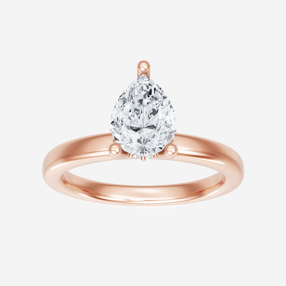 You’ve designed a ring that reflects lasting elegance and grace! Crafted from 14k Rose Gold, this exquisite Pear lab-grown diamond is the centerpiece of this unique design. This Basic Plain Shank with a Hidden Halo head showcases the brilliance of the Pear diamond, creating a timeless look. This elegant piece is the perfect symbol of love, strength, and timeless beauty.