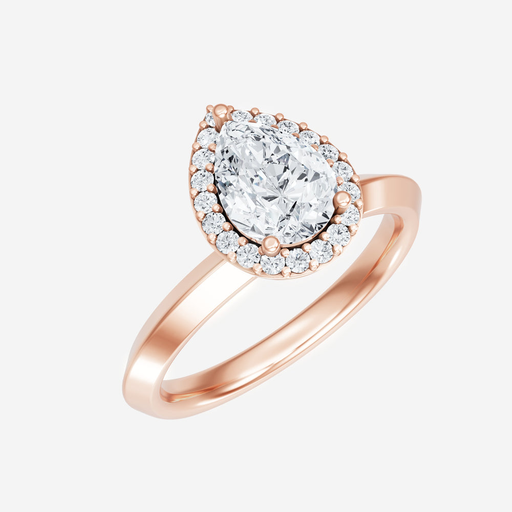 You’ve designed a ring that reflects lasting elegance and grace! Crafted from 14k Rose Gold, this exquisite Pear lab-grown diamond is the centerpiece of this unique design. This Knife Edge Shank with a Single Halo head showcases the brilliance of the Pear diamond, creating a timeless look. This stunning ring makes the perfect symbol of everlasting love and devotion.