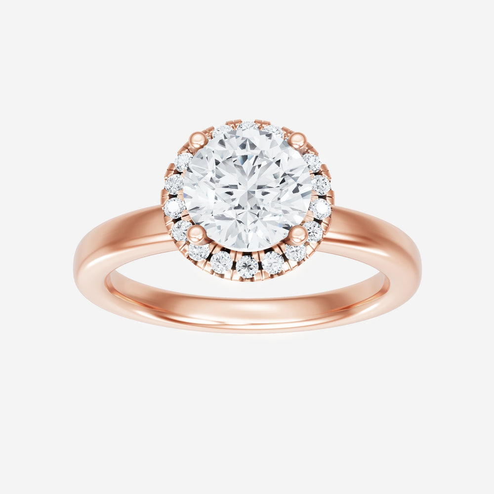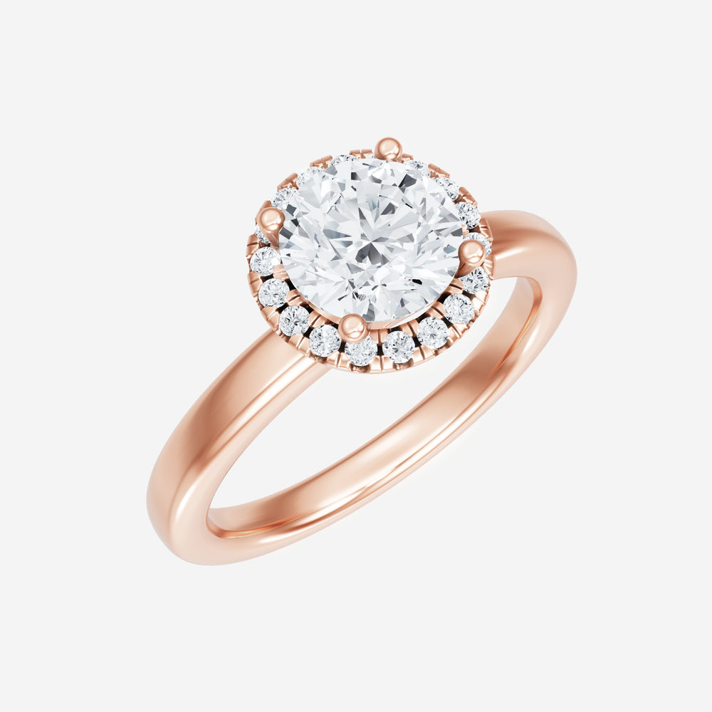 You’ve designed a ring that reflects lasting elegance and grace! Crafted from 14k Rose Gold, this exquisite Round lab-grown diamond is the centerpiece of this unique design. This Basic Plain Shank with a Micro Halo head showcases the brilliance of the Round diamond, creating a timeless look. This stunning ring makes the perfect symbol of everlasting love and devotion.