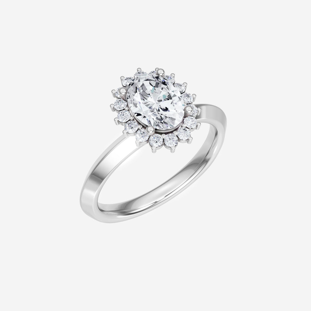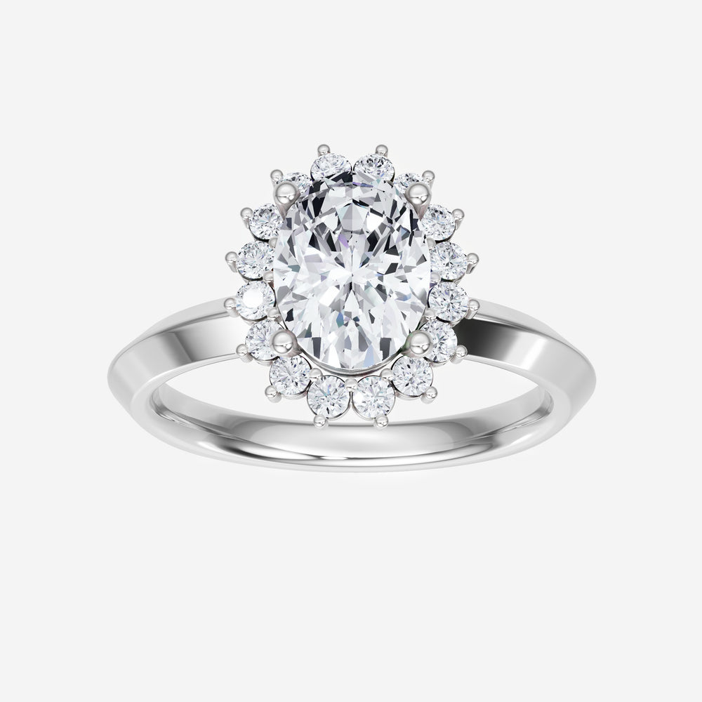 You’ve designed a ring that reflects lasting elegance and grace! Crafted from 14k White Gold, this exquisite Oval lab-grown diamond is the centerpiece of this unique design. This Knife Edge Shank with a Diana Halo head showcases the brilliance of the Oval diamond, creating a timeless look. A perfect choice to celebrate love, commitment, and everything in between.
