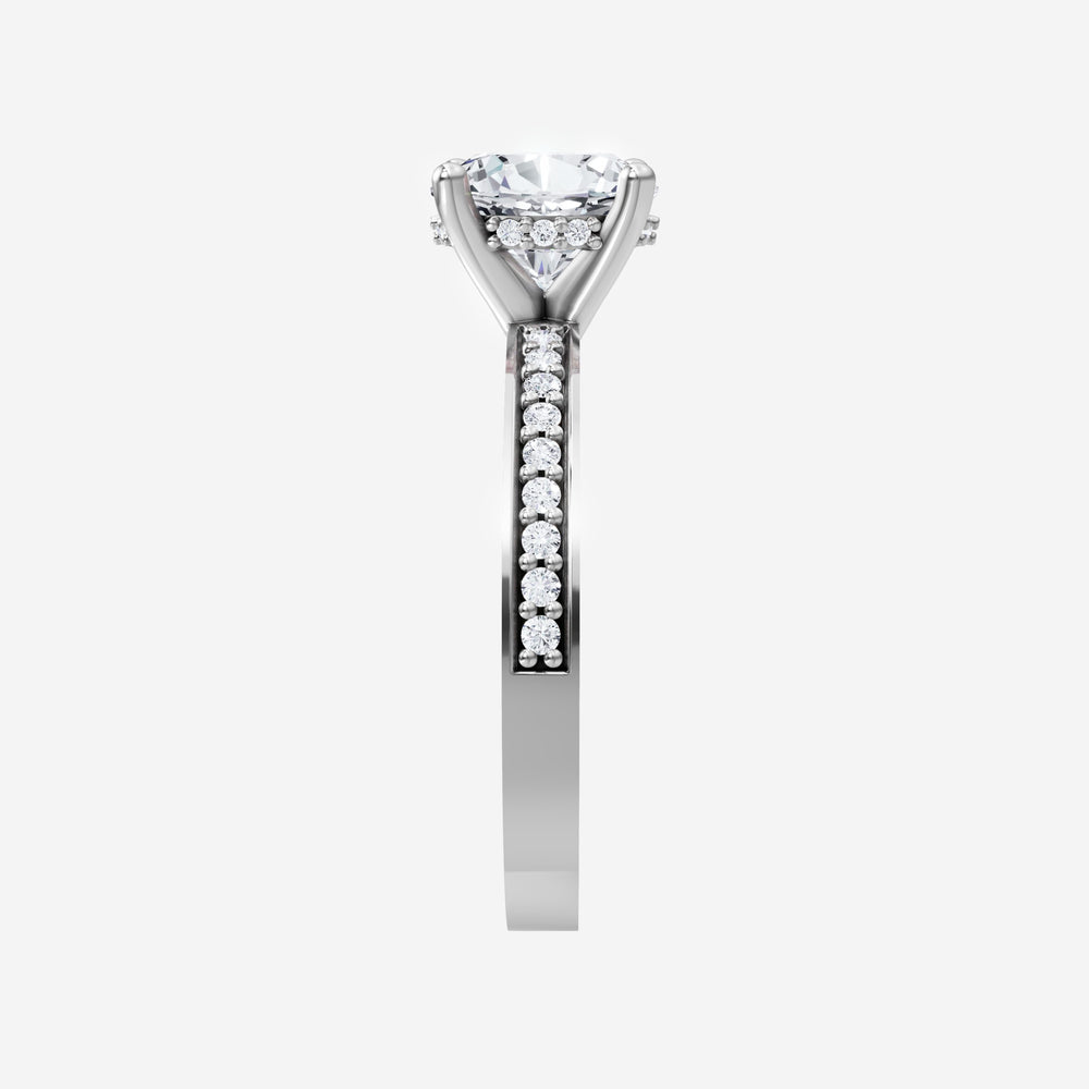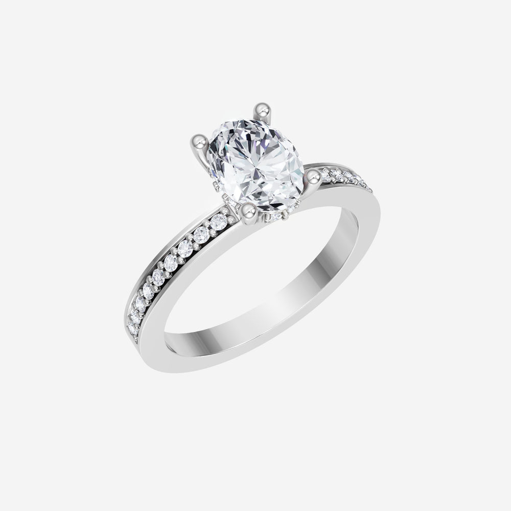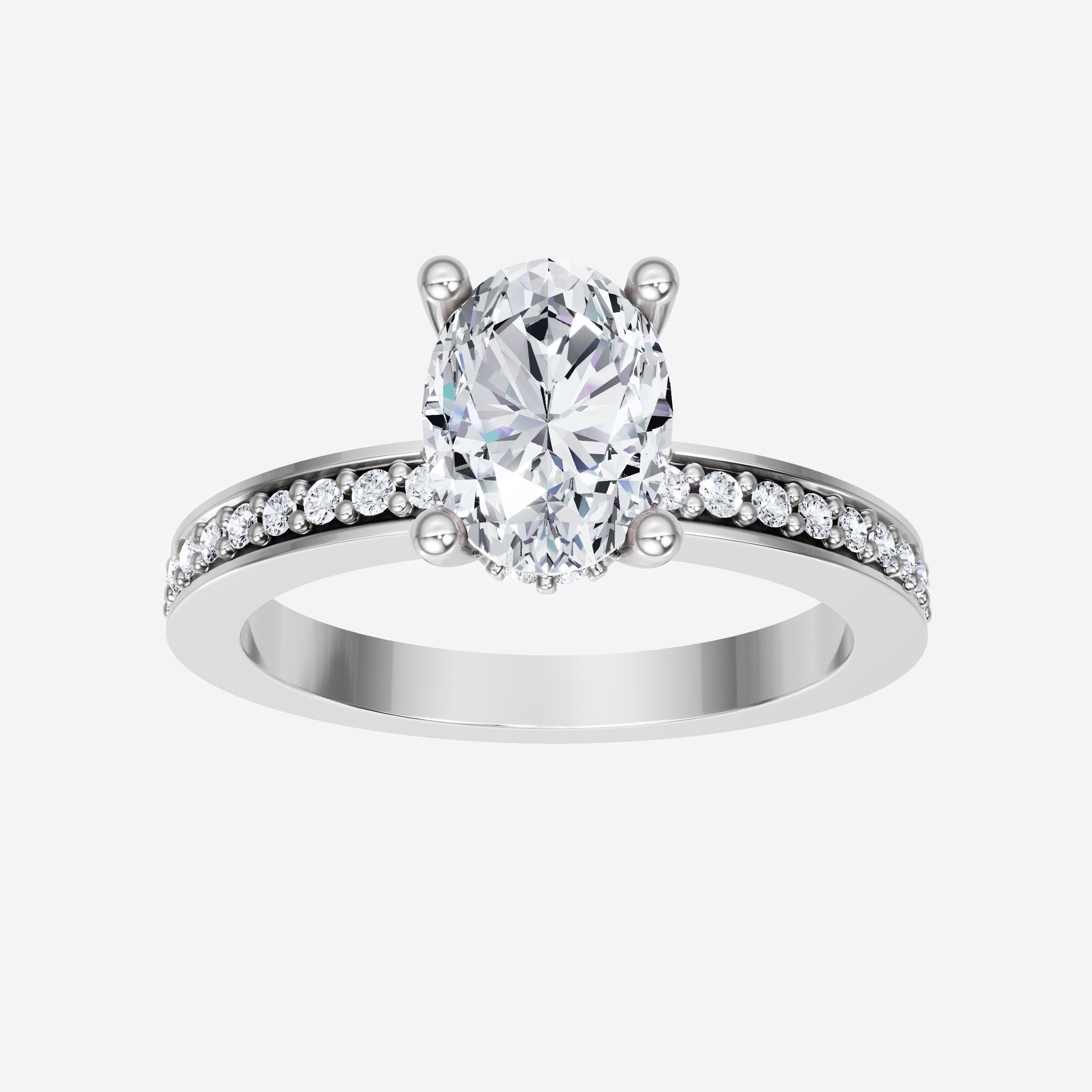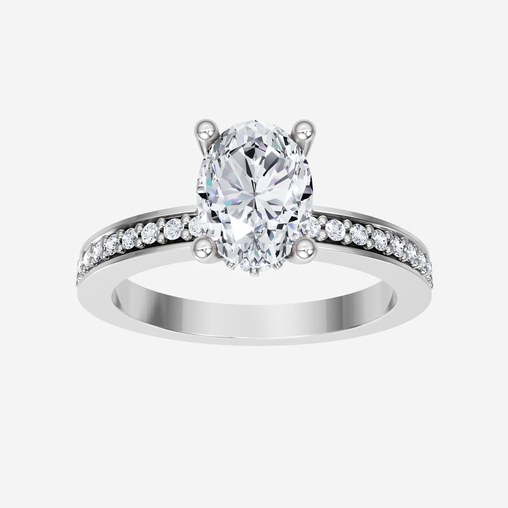 You’ve designed a ring that reflects lasting elegance and grace! Crafted from 14k White Gold, this exquisite Oval lab-grown diamond is the centerpiece of this unique design. This Single Pave Shank with a Hidden Halo head showcases the brilliance of the Oval diamond, creating a timeless look. With this ring, celebrate every moment of joy, success, and love.