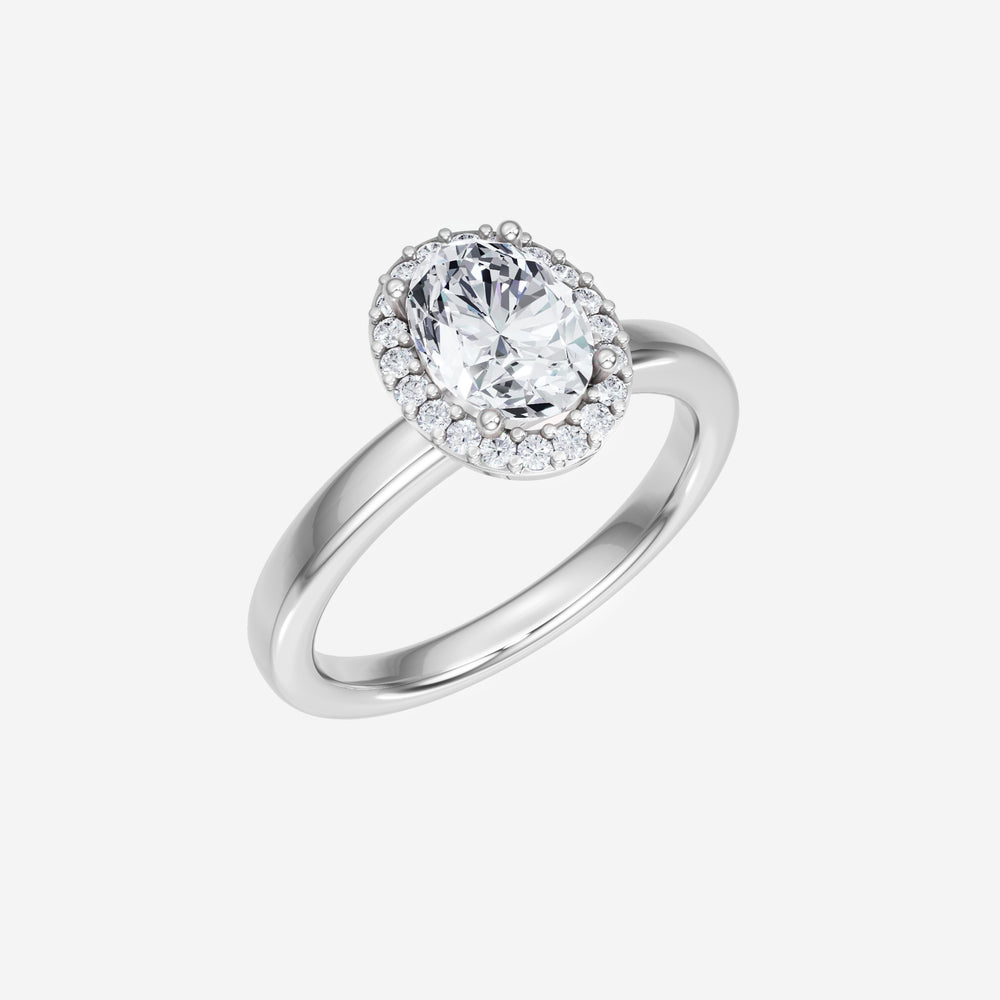 You’ve designed a ring that reflects lasting elegance and grace! Crafted from 14k White Gold, this exquisite Oval lab-grown diamond is the centerpiece of this unique design. This Basic Plain Shank with a Single Halo head showcases the brilliance of the Oval diamond, creating a timeless look. This ring will become a cherished reminder of life's most treasured moments.