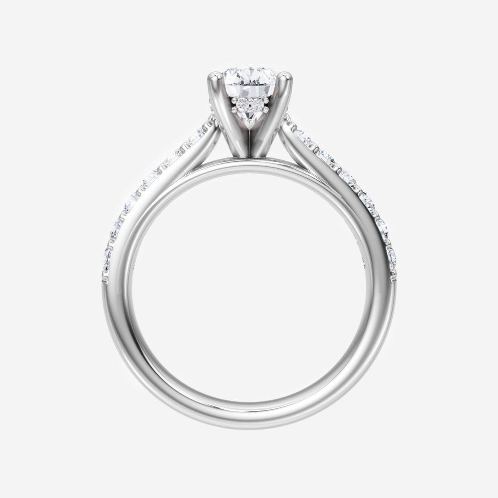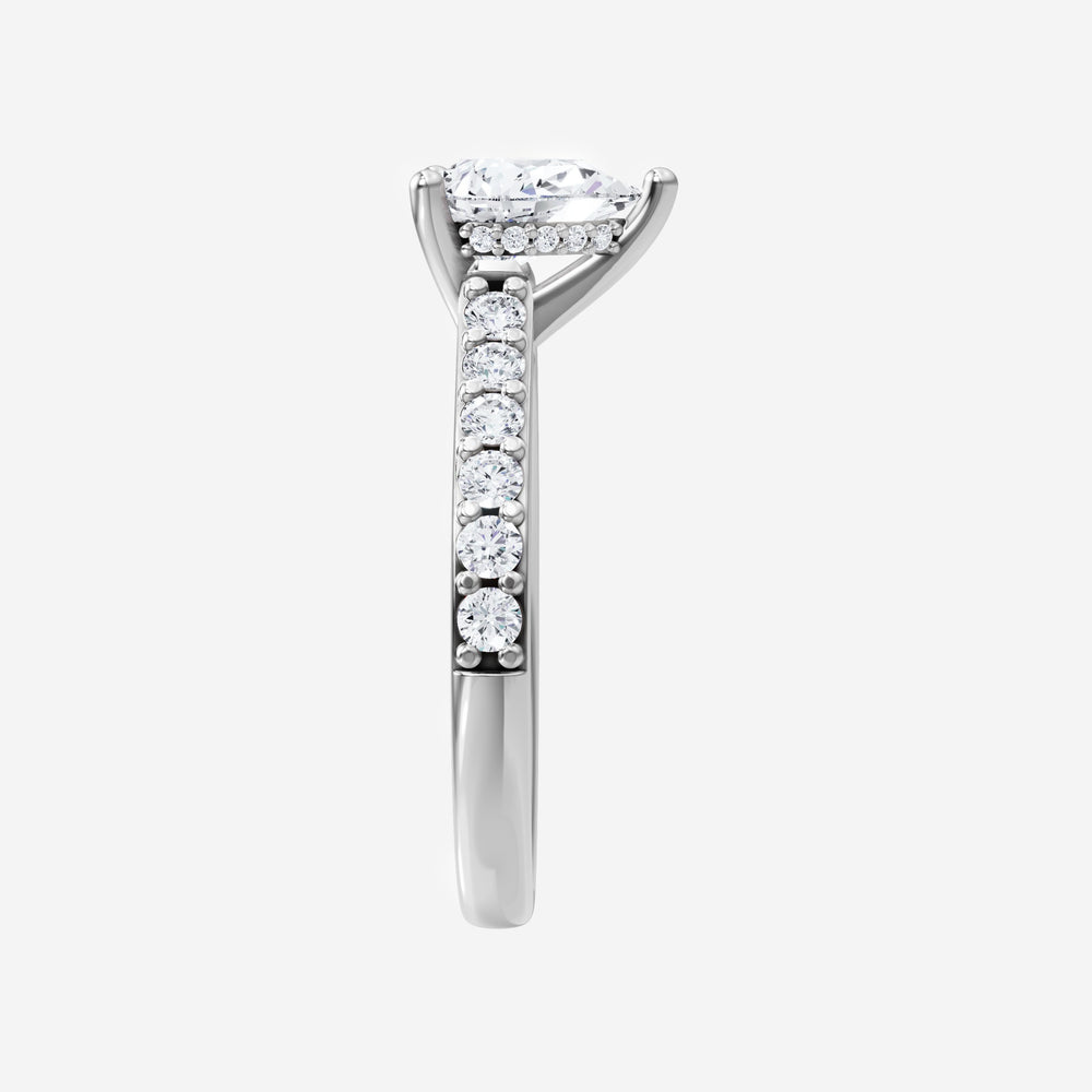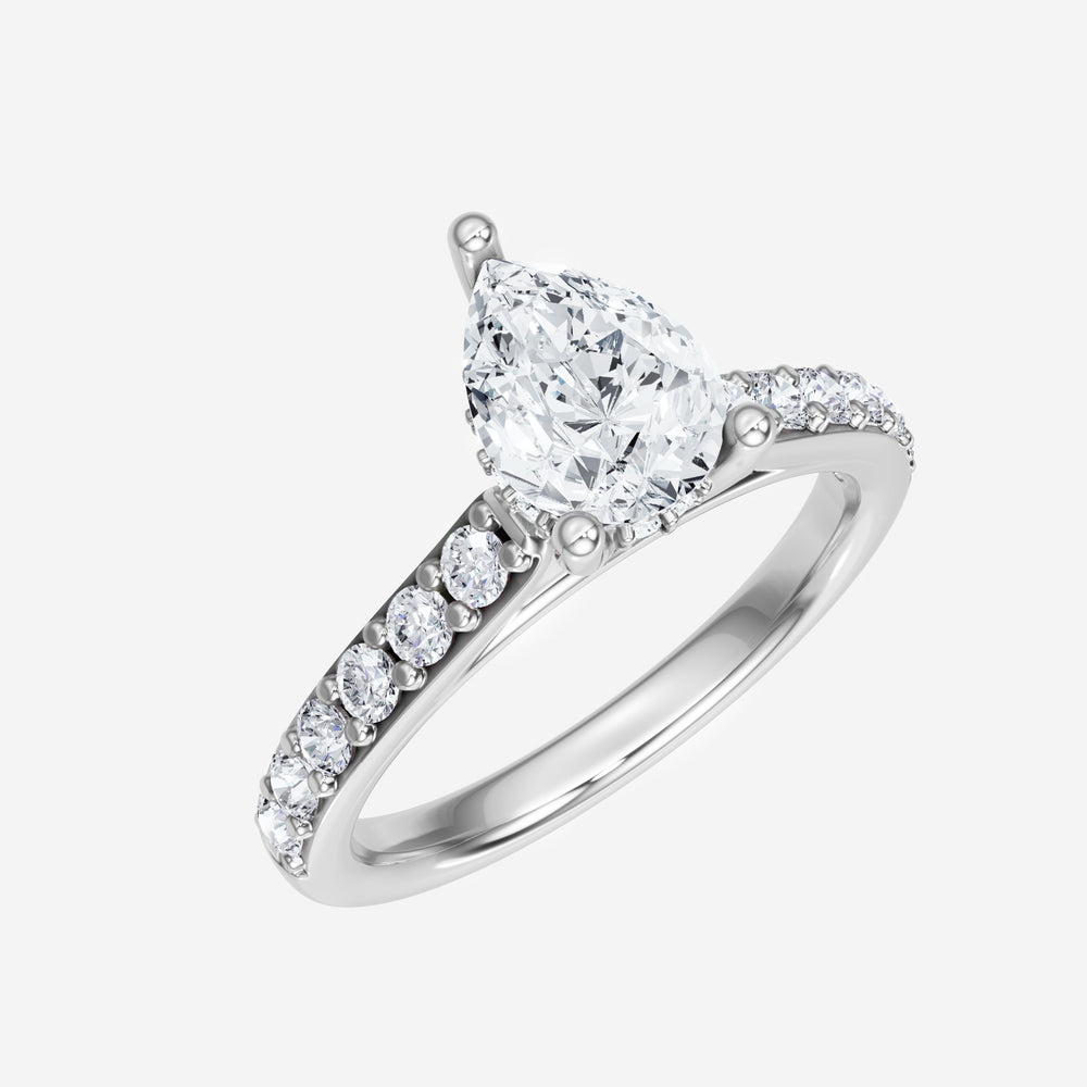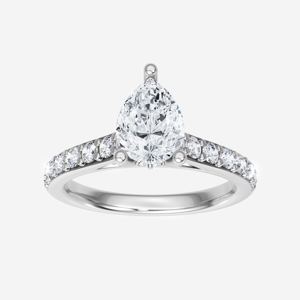 You’ve designed a ring that reflects lasting elegance and grace! Crafted from 14k White Gold, this exquisite Pear lab-grown diamond is the centerpiece of this unique design. This Cathedral Diamond Shank with a Hidden Halo head showcases the brilliance of the Pear diamond, creating a timeless look. With this ring, celebrate every moment of joy, success, and love.