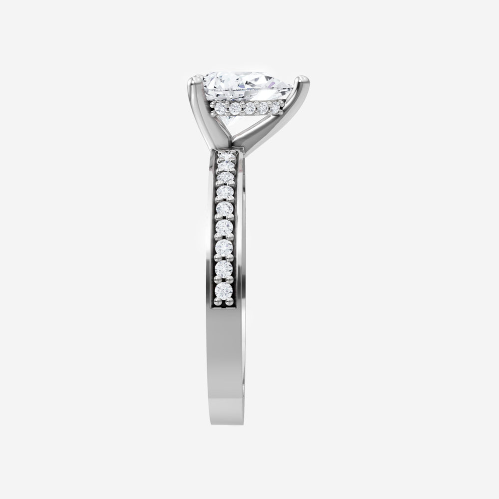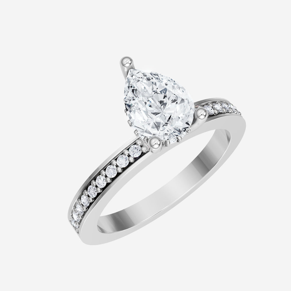 You’ve designed a ring that reflects lasting elegance and grace! Crafted from 14k White Gold, this exquisite Pear lab-grown diamond is the centerpiece of this unique design. This Single Pave Shank with a Hidden Halo head showcases the brilliance of the Pear diamond, creating a timeless look. This stunning ring makes the perfect symbol of everlasting love and devotion.