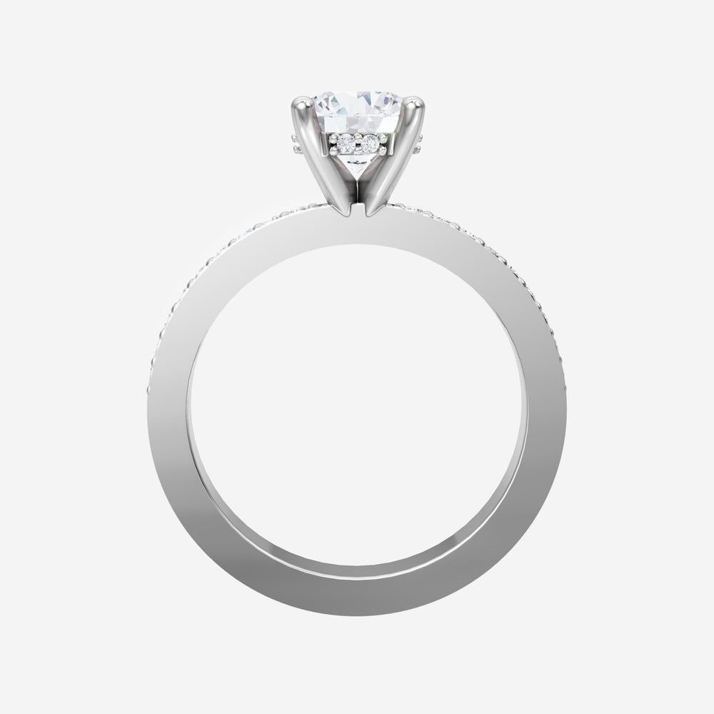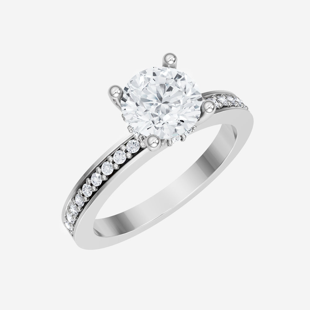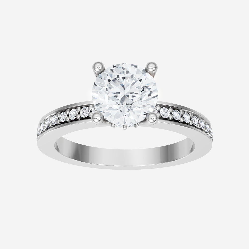 You’ve designed a ring that reflects lasting elegance and grace! Crafted from 14k White Gold, this exquisite Round lab-grown diamond is the centerpiece of this unique design. This Single Pave Shank with a Hidden Halo head showcases the brilliance of the Round diamond, creating a timeless look. A perfect choice to celebrate love, commitment, and everything in between.