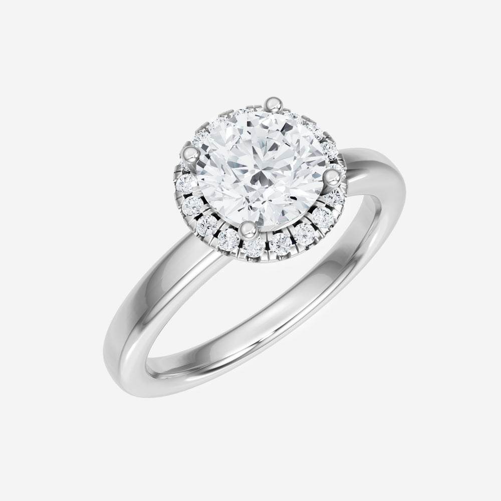 You’ve designed a ring that reflects lasting elegance and grace! Crafted from 14k White Gold, this exquisite Round lab-grown diamond is the centerpiece of this unique design. This Basic Plain Shank with a Micro Halo head showcases the brilliance of the Round diamond, creating a timeless look. It's a piece of elegance and beauty, perfect for marking life's most beautiful occasions.