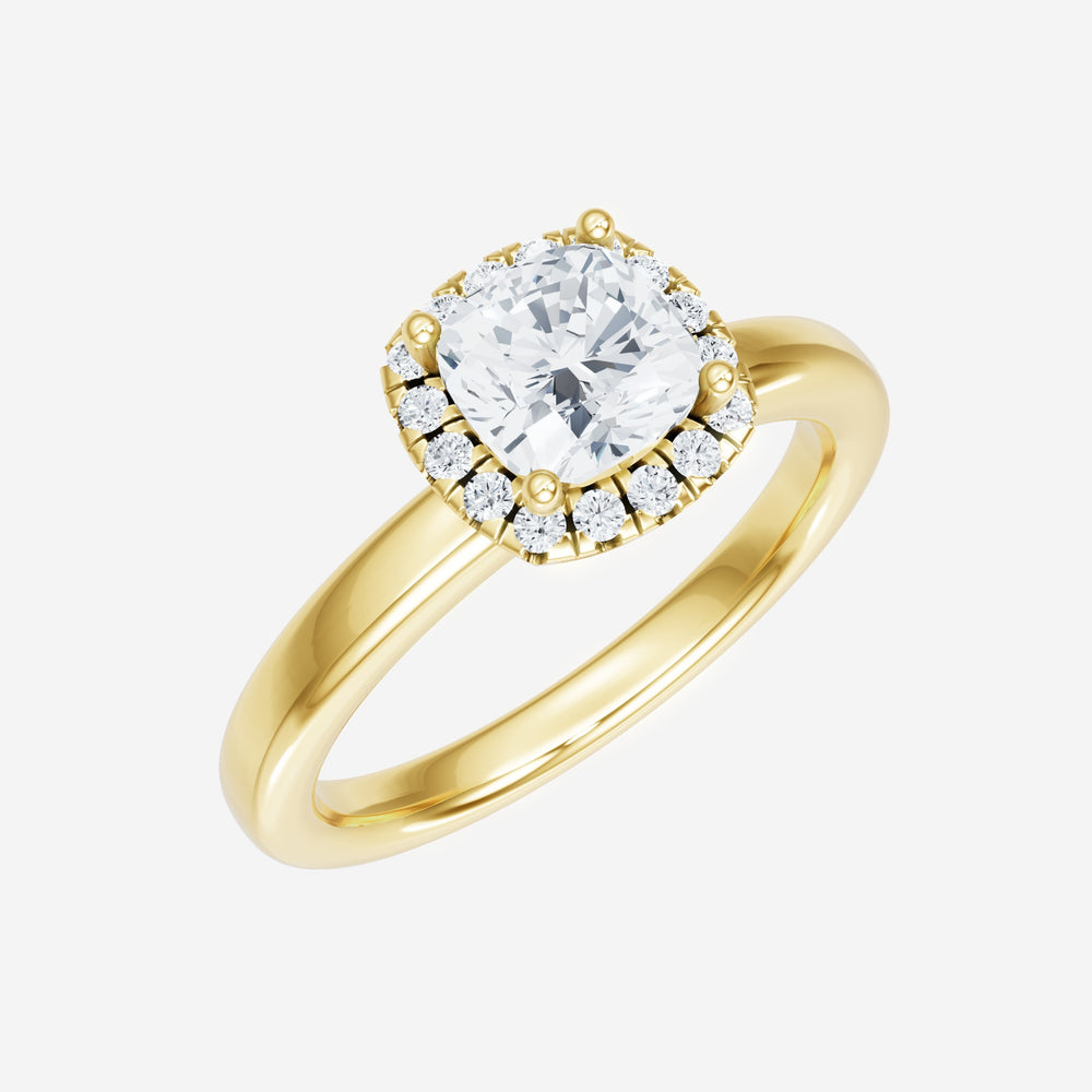 You’ve designed a ring that reflects lasting elegance and grace! Crafted from 14k Yellow Gold, this exquisite Cushion lab-grown diamond is the centerpiece of this unique design. This Basic Plain Shank with a Micro Halo head showcases the brilliance of the Cushion diamond, creating a timeless look. This ring will become a cherished reminder of life's most treasured moments.