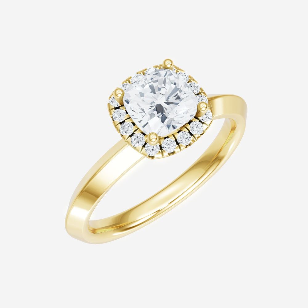 You’ve designed a ring that reflects lasting elegance and grace! Crafted from 14k Yellow Gold, this exquisite Cushion lab-grown diamond is the centerpiece of this unique design. This Knife Edge Shank with a Micro Halo head showcases the brilliance of the Cushion diamond, creating a timeless look. This ring will become a cherished reminder of life's most treasured moments.